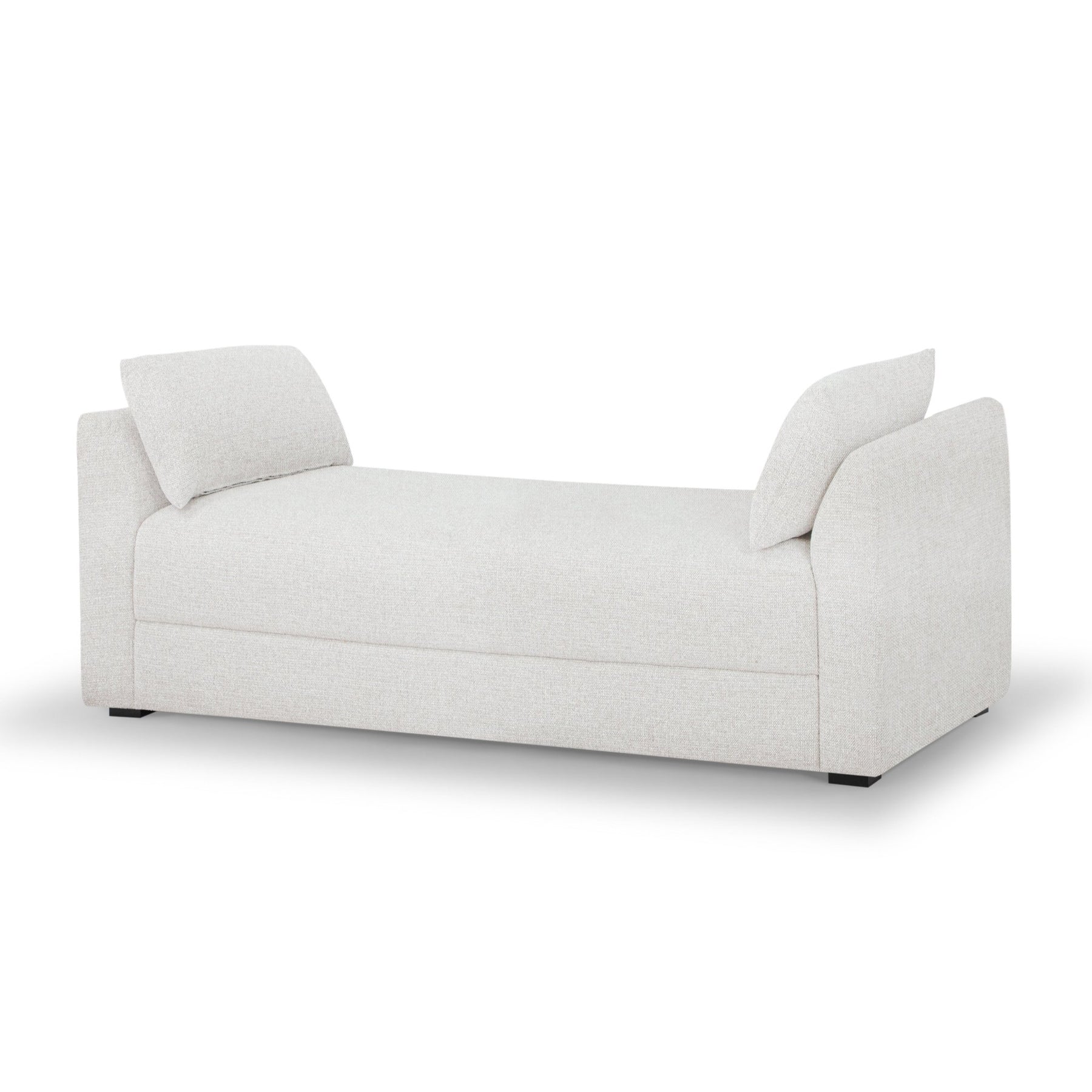 The Rochester Daybed blends sculptural modernism with tactile bouclé upholstery, offering a serene place to lounge or unwind. Featuring symmetrical bolster pillows, clean lines, and a fully upholstered frame, this piece is perfect for minimalist bedrooms, reading nooks, or open-concept lofts. Whether you’re looking for a refined lounging option or a chic extra seat, this daybed is a timeless and versatile addition to any curated interior. Lifestyle images may be AI-generated. Please refer to the standalone images or request additional angles for accuracy.