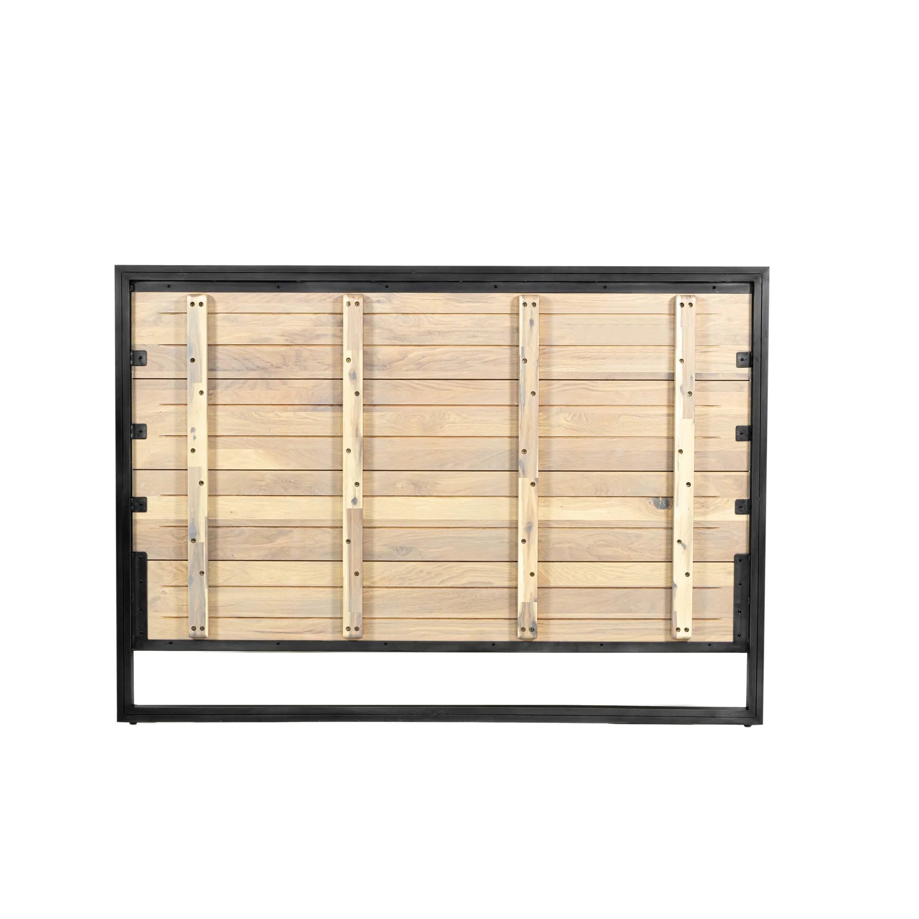 White Oak: headboard, footboard, side rails; Metal: Legs, heaboard frame, center beam support (no additional legs); Slats in total: 14; Legs are part of the footboard frame; Types of Wood Joinery: Basic Butt;