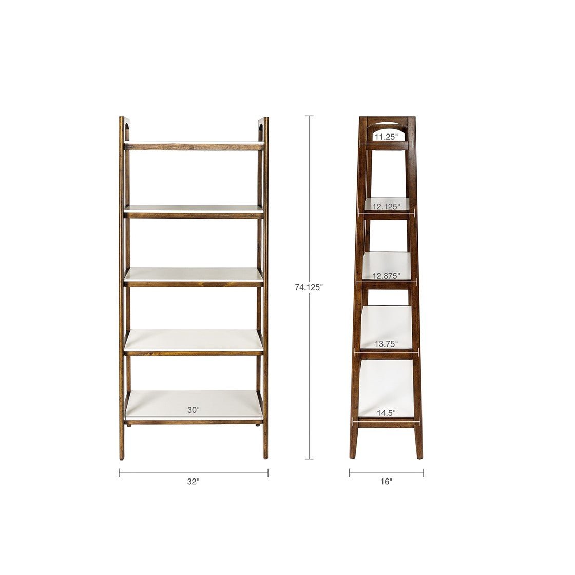 The Parker bookcase by Olliix brings a fresh look, make a bold statement with our Off-white tops on simple yet classic midcentury frames. Complete with a lower shelf in a pecan finish. Dimensions: 31"W x 16"D x 73"H