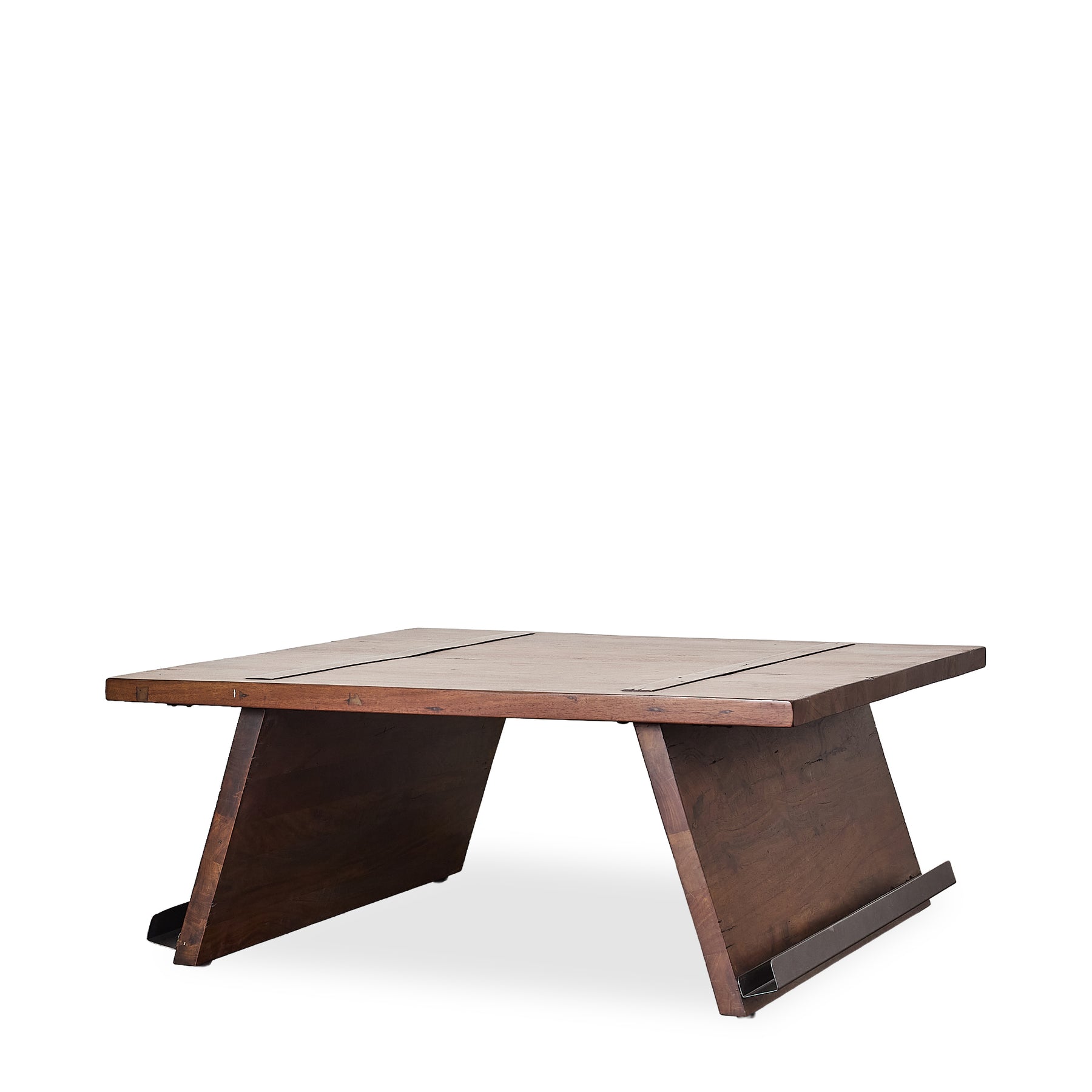 The Ventura Walnut Coffee Table blends mid-century Brutalist styling with solid walnut construction, offering a bold architectural presence. Featuring a broad plank top with visible joinery and sharply tapered panel legs finished with subtle metal stabilizers, this piece is perfect for curated living rooms or statement lounge areas. Whether you’re looking for a sculptural centerpiece or a low-profile functional surface, this coffee table is a timeless and durable choice. Lifestyle images may be AI-generated. Please refer to the standalone images or request additional angles for accuracy.