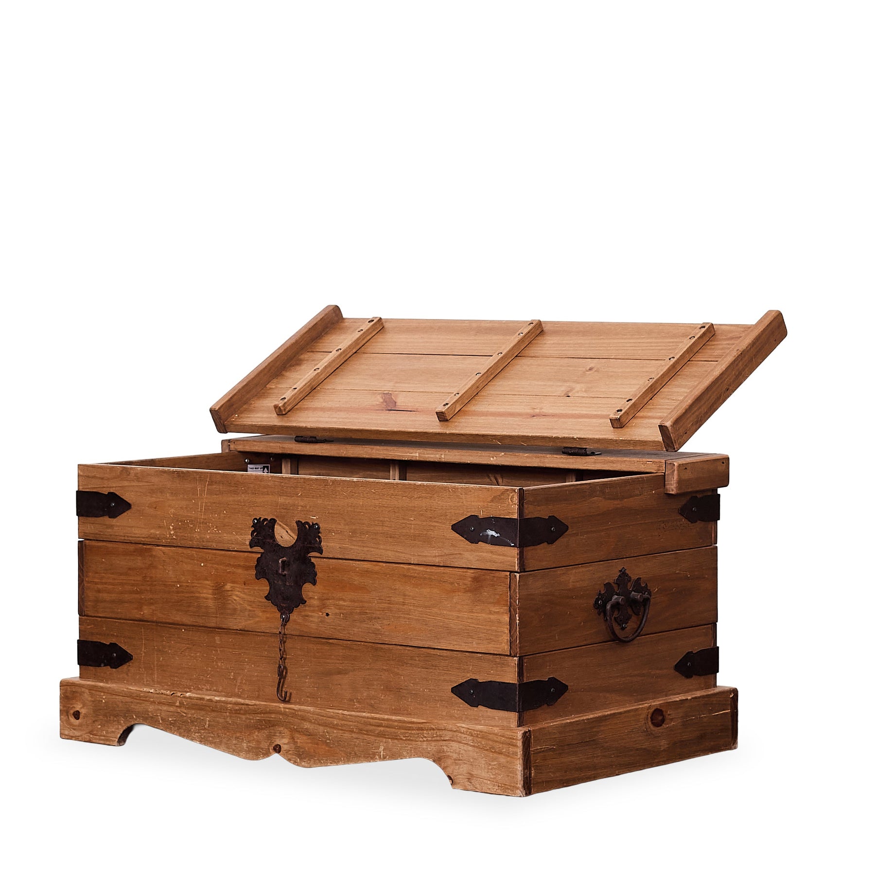 The Adler Mid-Century Storage Trunk in Distressed Pine blends rustic mid-century charm with vintage iron hardware, offering a character-rich solution for stylish storage. Featuring hand-forged black metal accents, a solid pine build, and scalloped base detailing, this piece is perfect for entryways, living rooms, or at the foot of a bed. Whether you’re looking for hidden storage or a unique decorative accent, this trunk is a timeless and functional choice. Lifestyle images may be AI-generated. Please refer to the standalone images or request additional angles for accuracy.