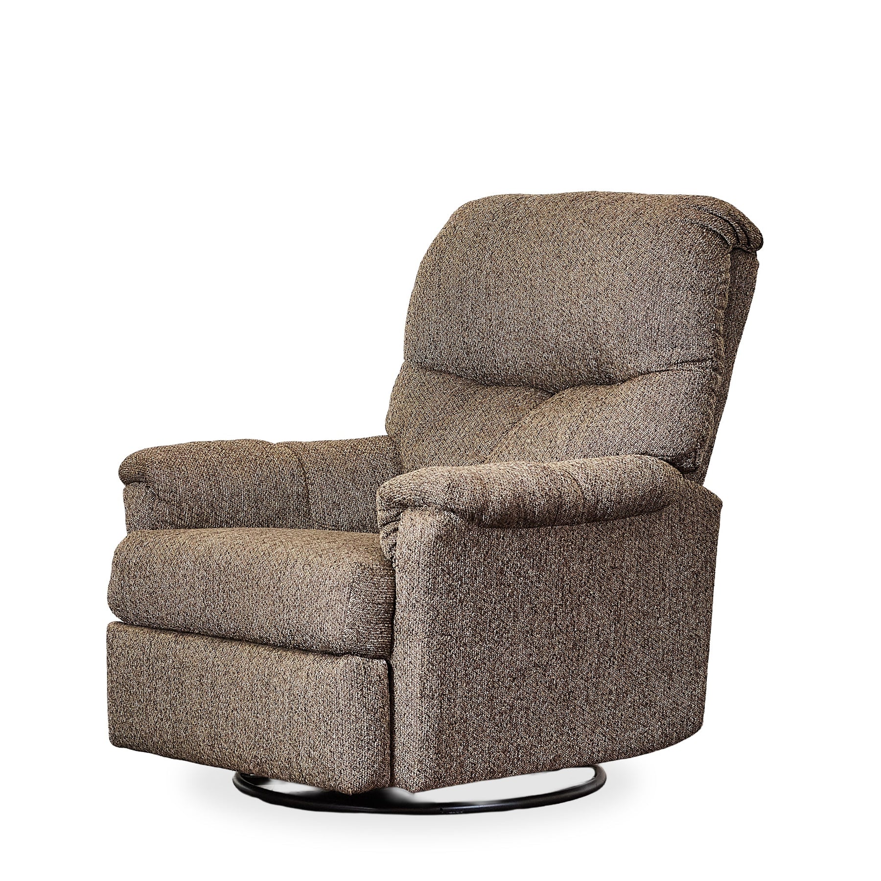 The Hudson Swivel Recliner Chair blends plush upholstery with a sturdy swivel base, offering supportive comfort with effortless motion. Featuring overstuffed cushions, a textured woven fabric, and a manual lever for smooth reclining, this piece is perfect for cozy living rooms, reading corners, or entertainment dens. Whether you’re unwinding after a long day or settling in for a movie night, this recliner is a supremely comfortable, enduring choice. Lifestyle images may be AI-generated. Please refer to the standalone images or request additional angles for accuracy.