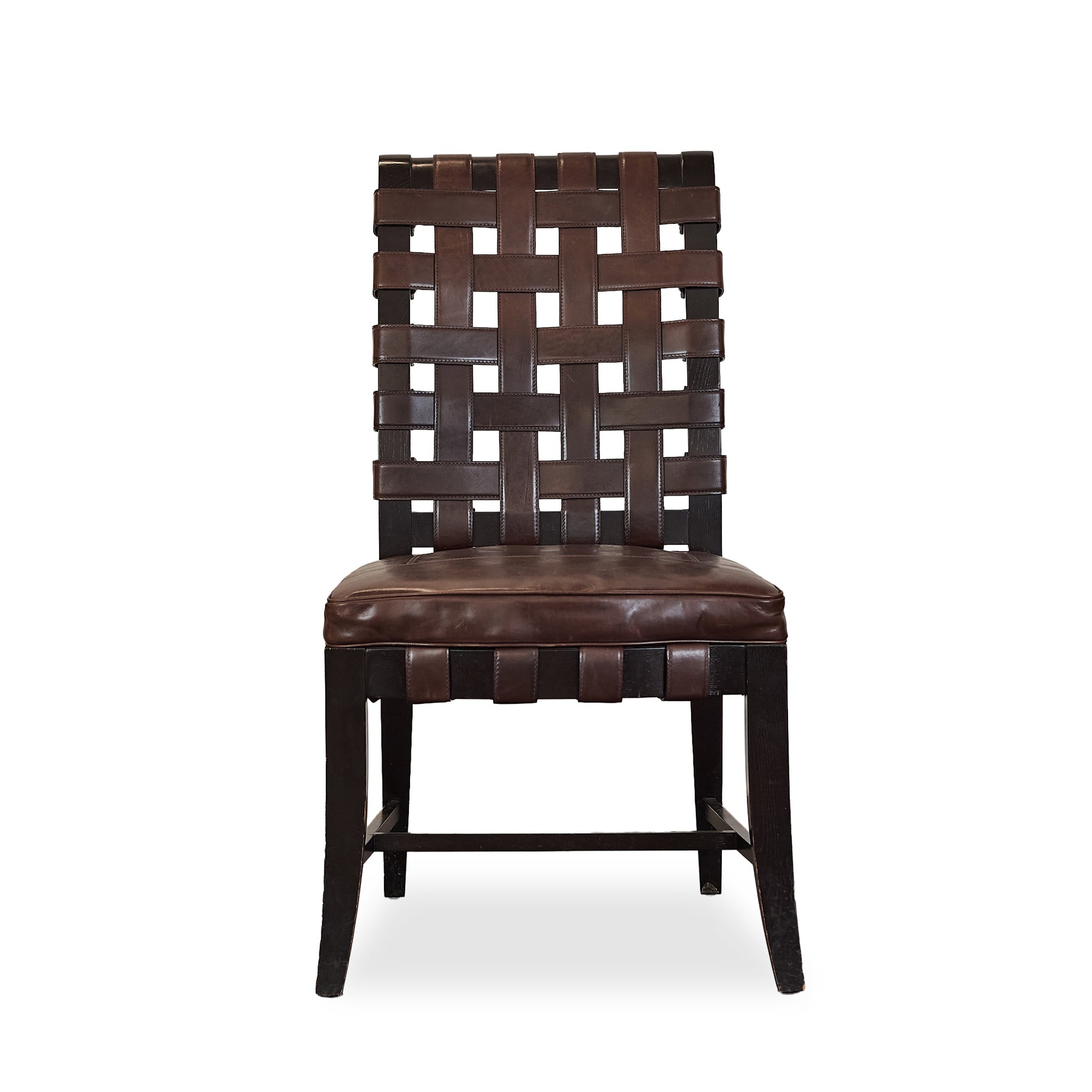 The Woven Leather Dining Chair blends mid-century craftsmanship with rich, full-grain leather, offering a distinctive balance of texture and comfort. Featuring handwoven leather straps, a plush cushioned seat, and a solid wood frame with tapered legs, this piece is perfect for modern dining spaces, stylish offices, or statement seating areas. Whether you’re seeking a refined accent chair or everyday dining comfort, this artisan-crafted chair is a timeless and durable choice. Lifestyle images may be AI-generated. Please refer to the standalone images or request additional angles for accuracy.