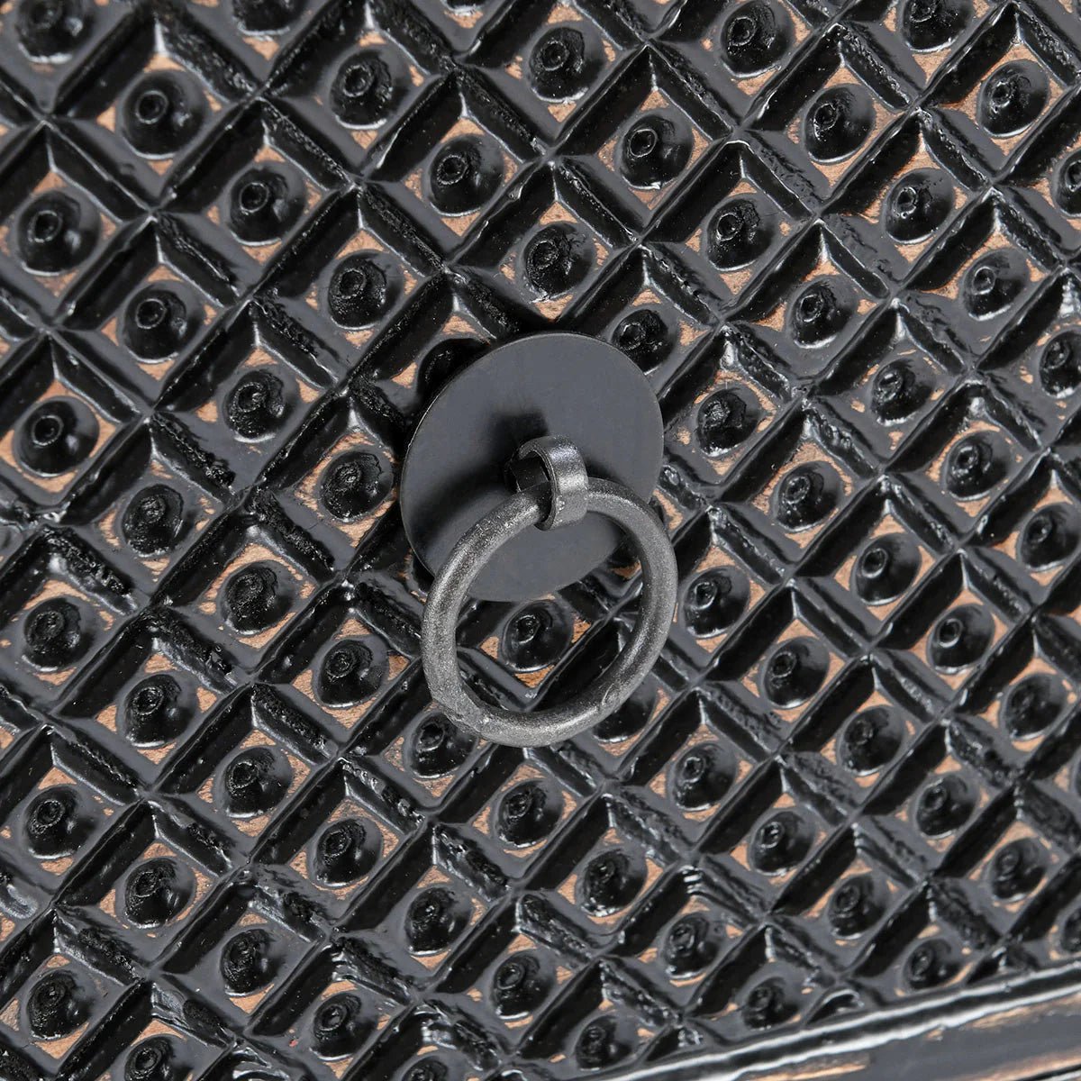 Reclaimed wood infuses this table with personality by preserving the dynamic texture, grain, knots, and dents of aged wood. Hand-finished and distressed for an artisanal look and feel, this piece features a diamond design on the drawer fronts.
