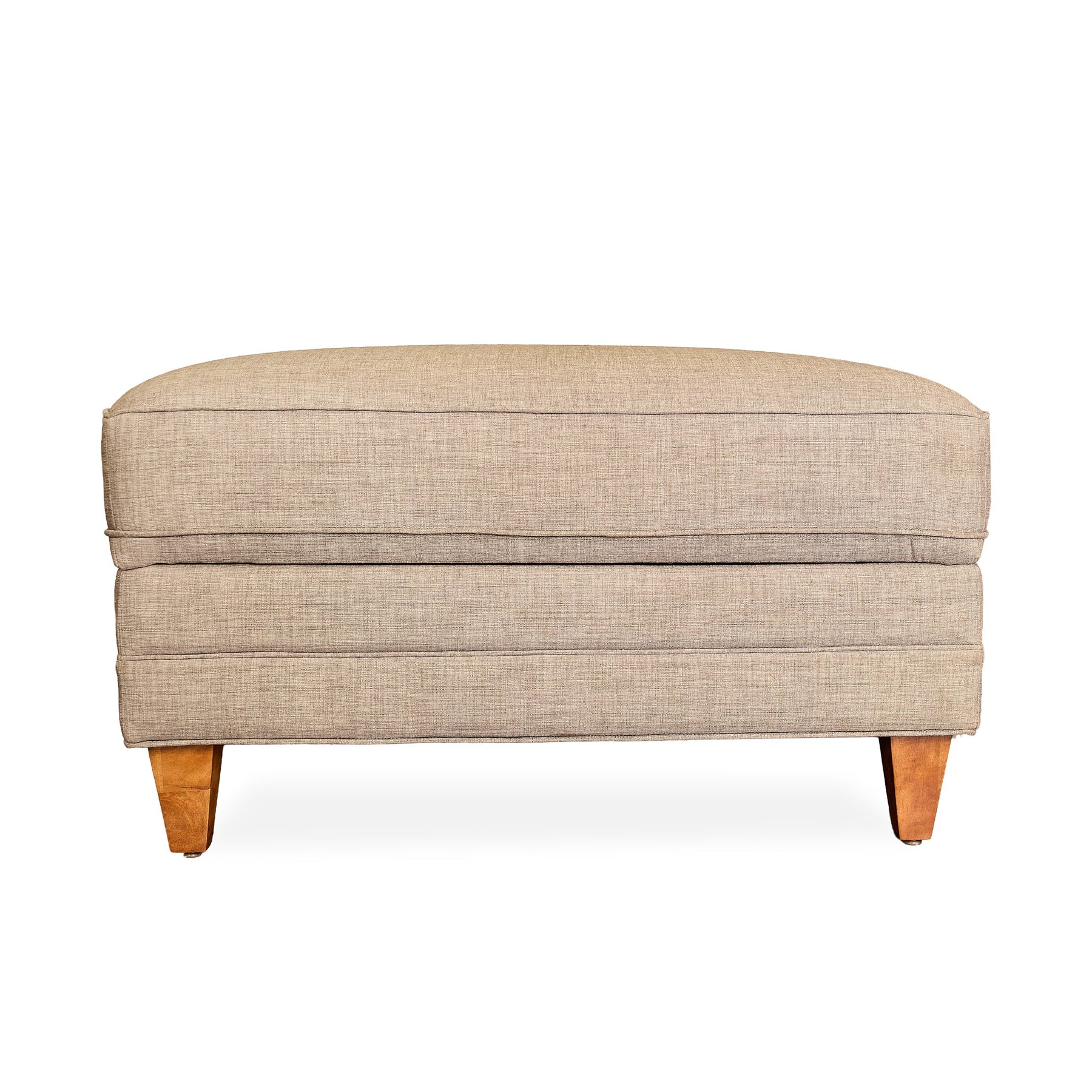 Mid-Century Modern Upholstered Ottoman blends sleek lines with warm wood legs, offering a versatile balance of style and comfort. Featuring a plush, upholstered cushion in a textured taupe fabric and tapered solid wood legs, this piece is perfect for living rooms, reading corners, or paired with a lounge chair. Whether you’re looking for extra seating, a soft footrest, or a casual coffee table alternative, this ottoman is a timeless and functional choice for mid-century inspired spaces. Lifestyle images may be AI-generated. Please refer to the standalone images or request additional angles for accuracy.