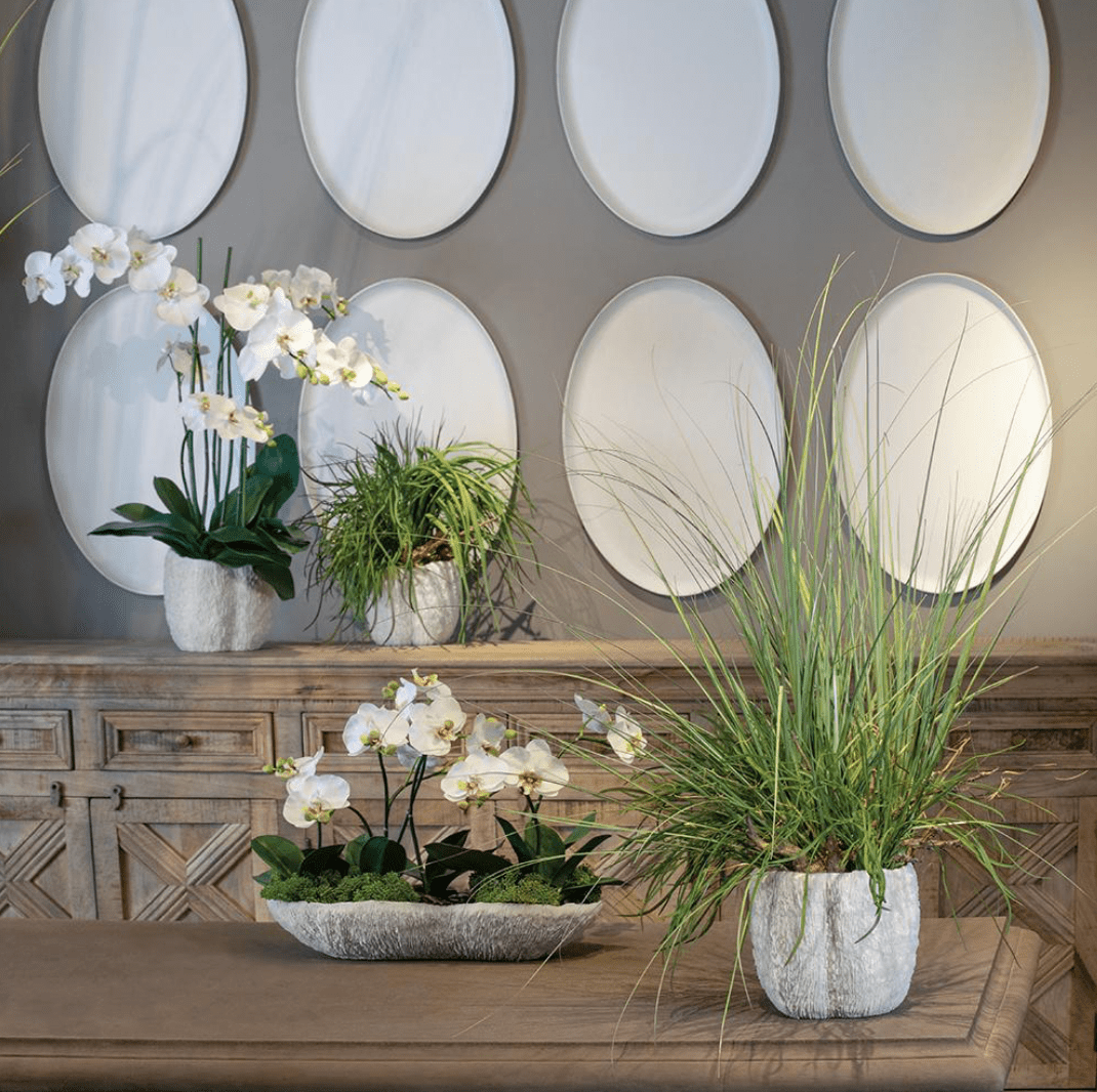 Add a more organic, sculptural touch with this mixed grass and driftwood arrangement set in a coral-style vase. The loose, flowing grass creates movement and softness, while the driftwood adds a natural, slightly coastal element that gives it more character.
