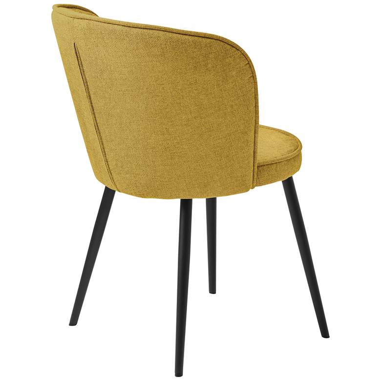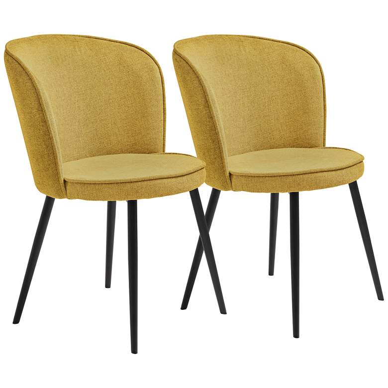 Curved backs and round seats create a crisp, refined profile for a set of two contemporary dining chairs. From Unique Furniture, they showcase compact, comfortable design highlighted in warm mustard oeko-tex fabric. Four metal legs are gently splayed to add vintage character and receive a black finish that's understated and timeless to complement surrounding decor.