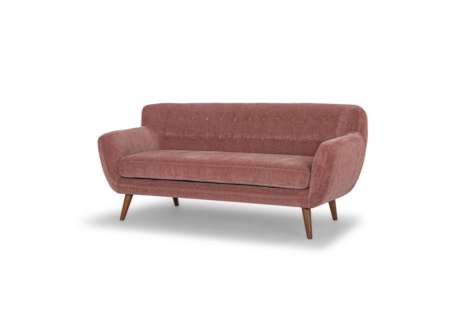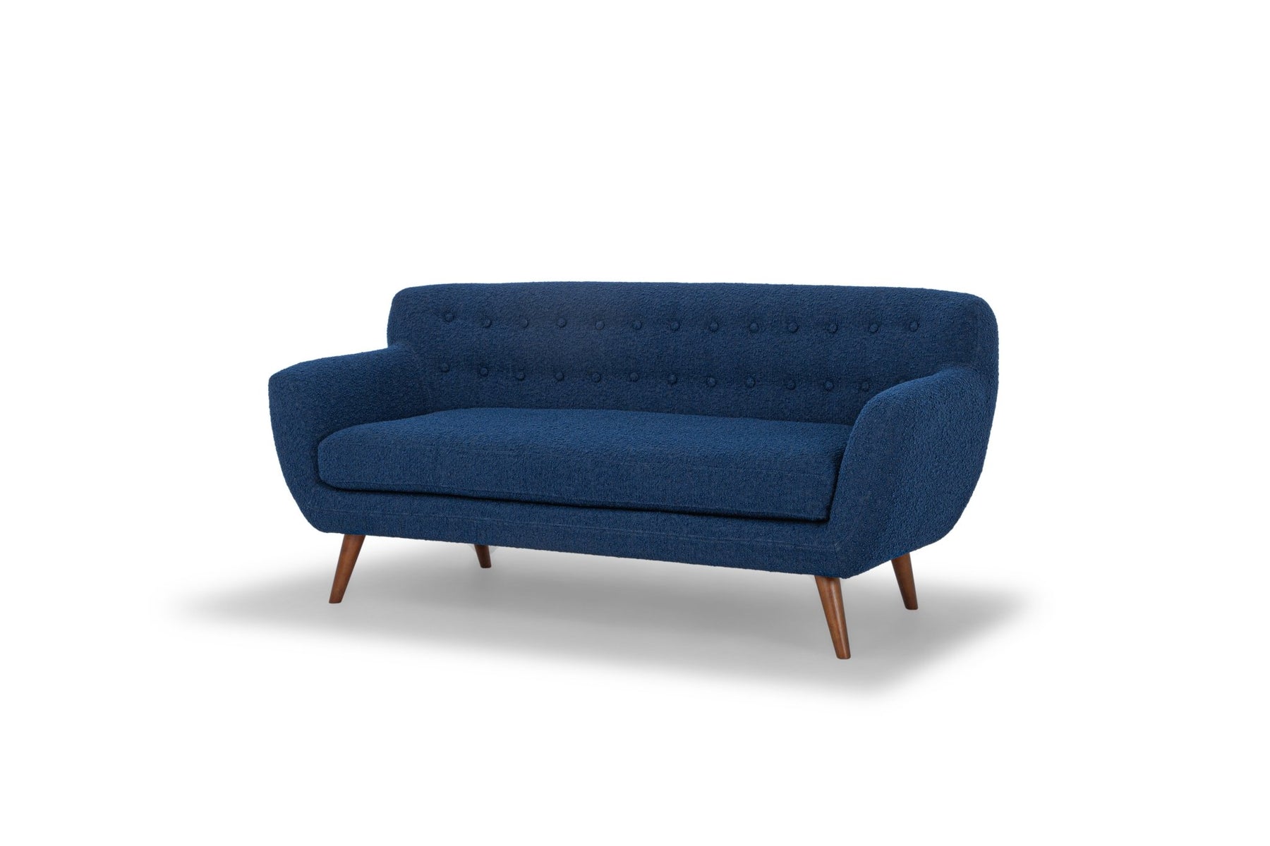 Perfect for mid-century homes and small spaces, this loft sofa maximizes seating space with a tight back and curved underside. A button upholstered back and angled tapered legs give a sharp vintage look that will go with all of your living room's vintage finds.