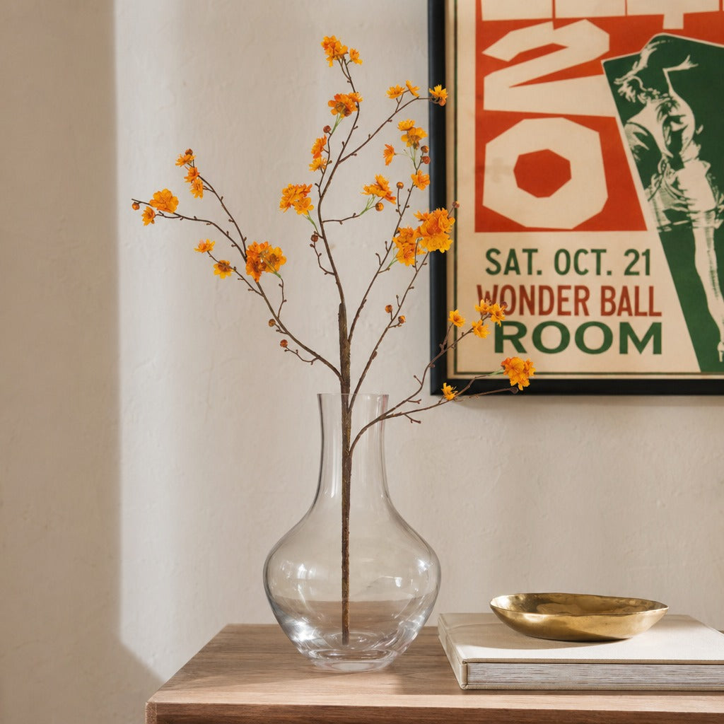 Botanica #2851 is a 37-inch faux-floral stem in golden orange and warm cream — a meadow-airy spray of wildflowers that brings a single confident pop of color to a tall vase or a console arrangement. Pair one with a clear glass vessel on a side table or layer two or three for a fuller effect. Browse all home decor in our Portland showroom.