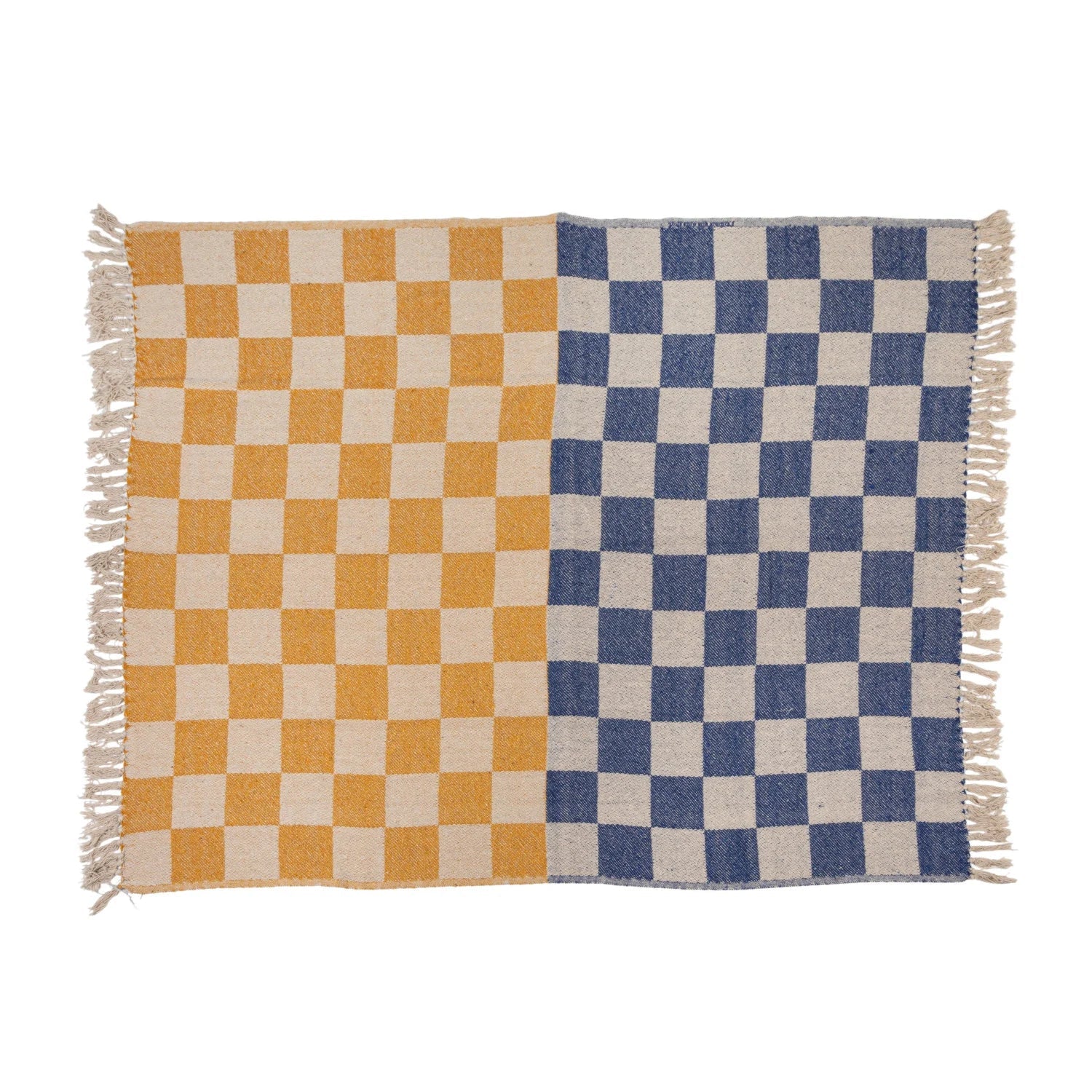 Woven Recycled Cotton Blend Throw with Check Pattern & Fringe