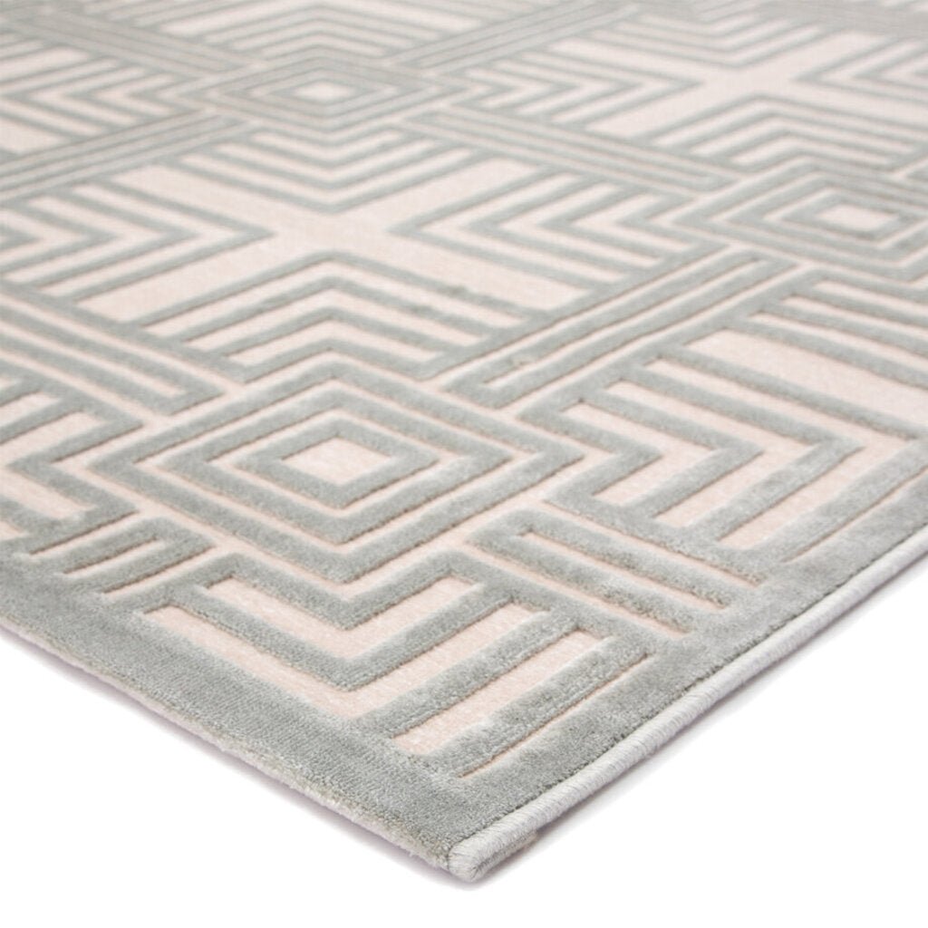 The Fables collection is a curated assortment of contemporary and transitional styles with an invitingly soft touch, rich high-low texture, and a luxurious sheen. The Issaic area rug combines a captivating geometric tile design with a serene, neutral palette for a stunning modern accent. Blended of acrylic, rayon, and polyester, this cream and silver power-loomed rug boasts a lustrous look for a touch of glamour in any space.