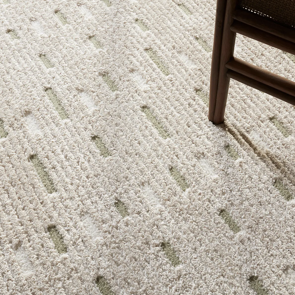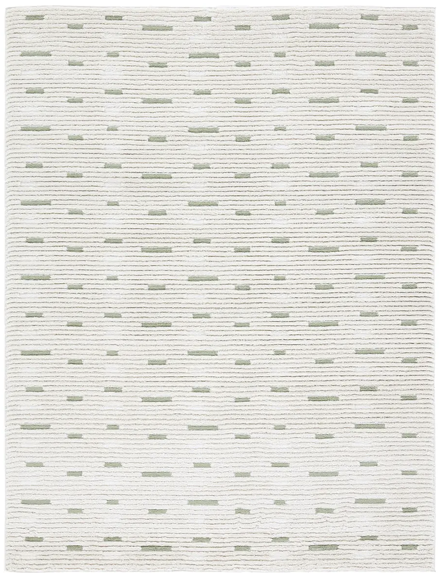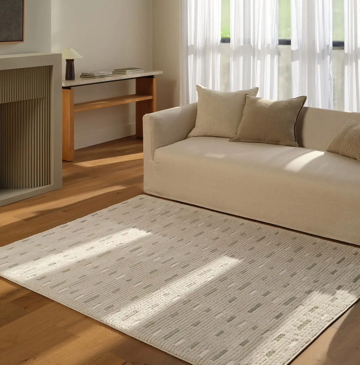 The Verdant design enhances modern Moroccan inspiration with cozy, inviting appeal. Its plush, shed-free construction offers an ultra-soft feel, enhanced by subtle high-low detailing for added texture. Designed for medium-traffic spaces like living rooms, foyers, and sunrooms, this contemporary rug features a modern geometric pattern in ivory with green refreshing accents.