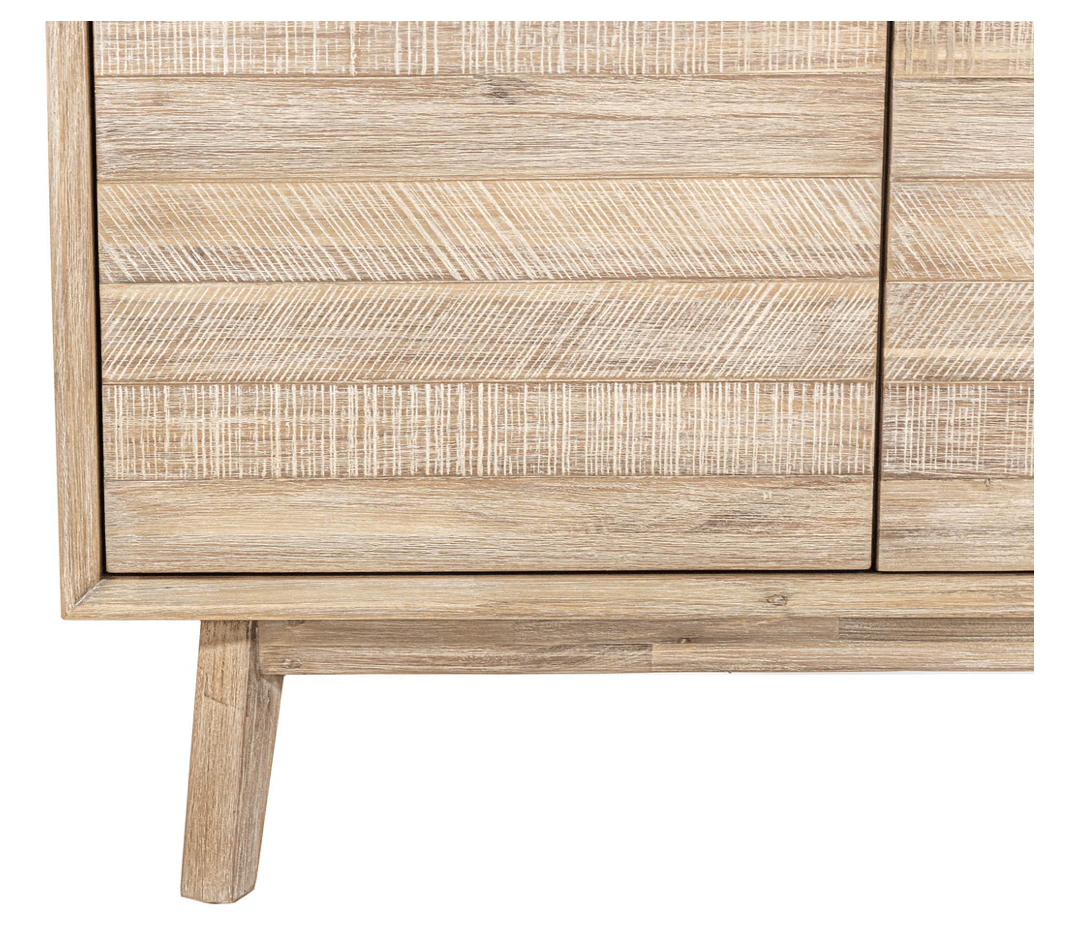 This piece caters to modern living, with its light yet neutral finish. Made from acacia wood, each piece is steel brushed to add texture and will brighten up any space.