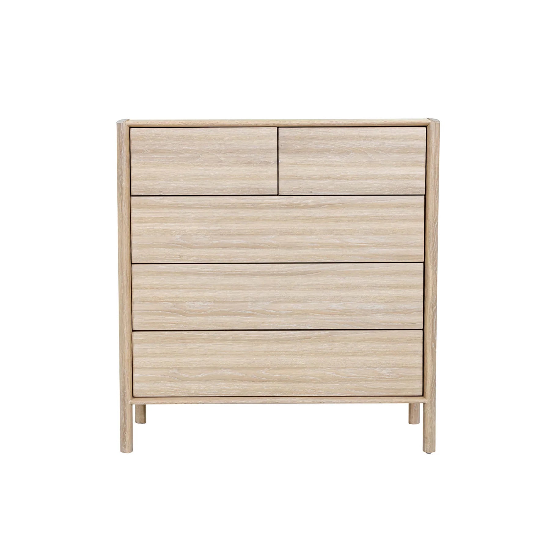 Anti-tilt Kit x 2 Number ofdrawers: 5; Felt lined top Drawers: No; Removable legs: No; Finished Back: No; Type of Wood Joinery: Tongue & Groove;