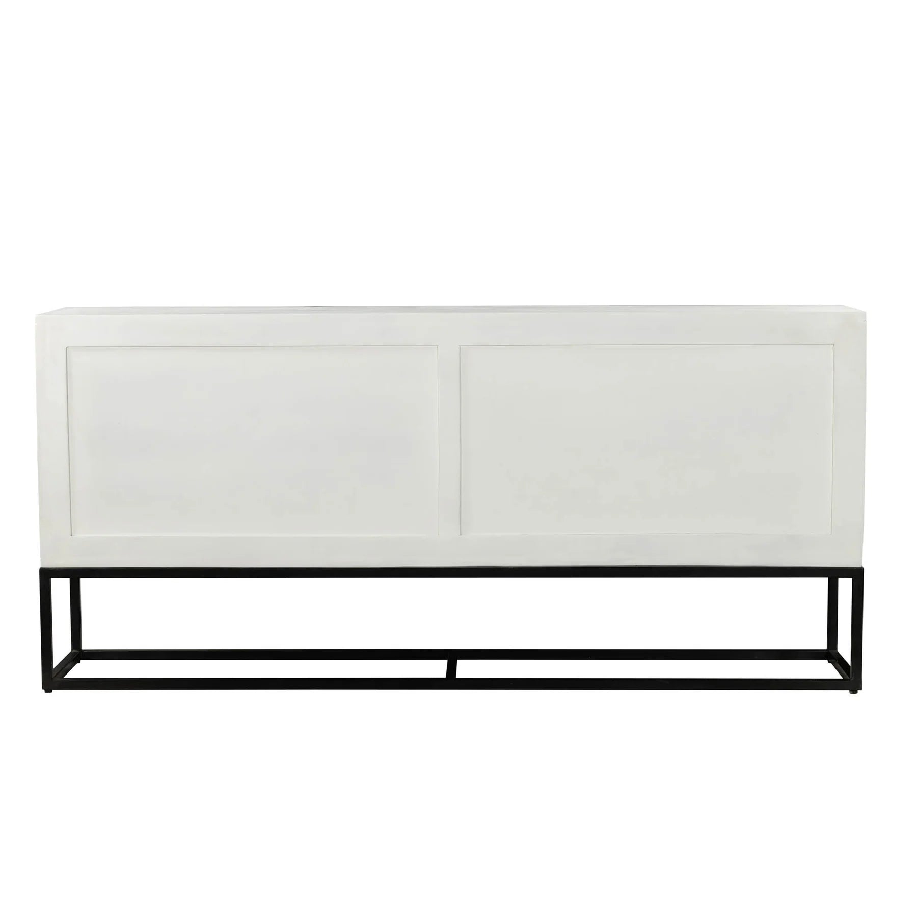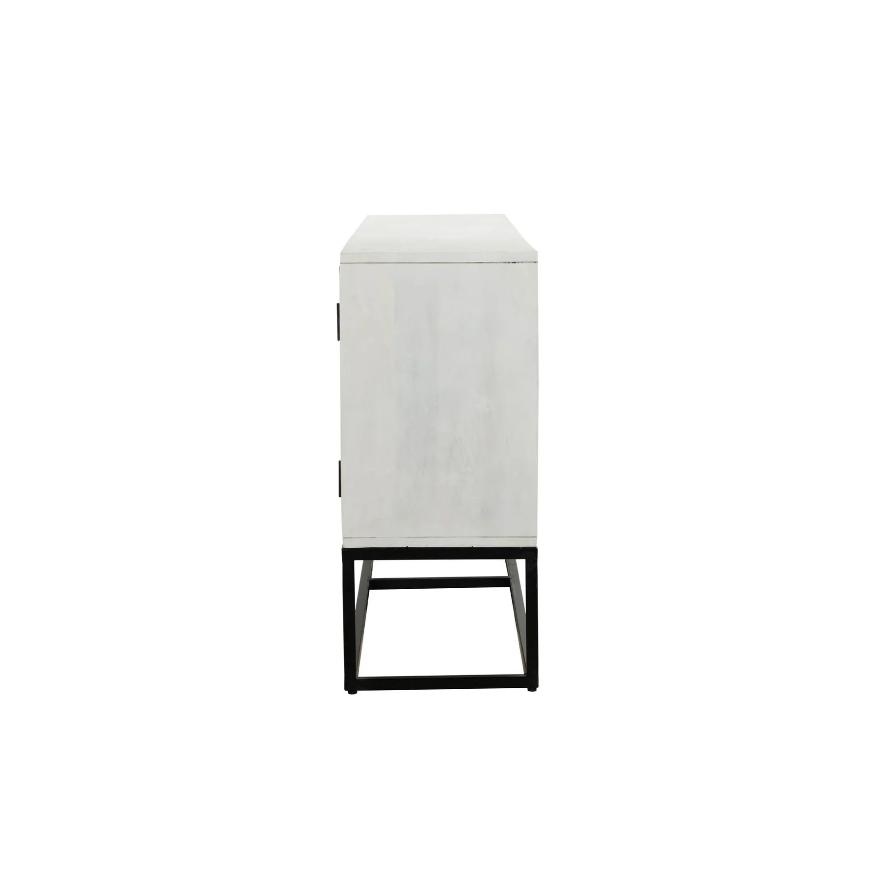 The Caged Sideboard, a fusion of exquisite design and practicality that redefines storage elegance. Crafted with the same dedication to quality, this sideboard is fashioned from solid mango wood in a graceful white wash finish, bringing a touch of timeless beauty to your dining space or living room.