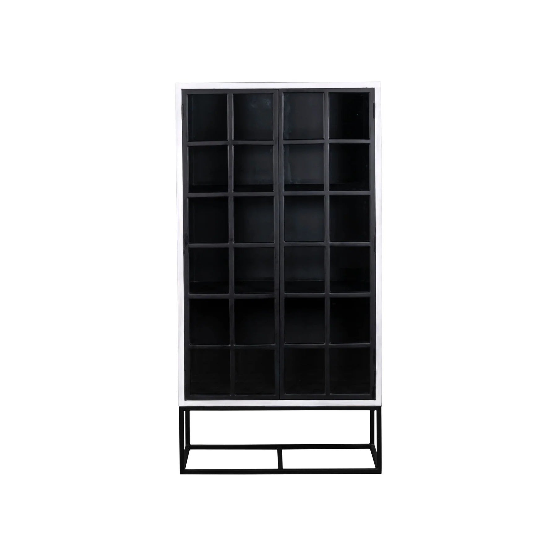 Introducing the Cages Tall Cabinet Impeccably crafted from solid mango wood, this tall cabinet is presented in a sophisticated off-white finish, effortlessly adapting to any interior space. With doors framed in metal and clear glass, the Cages Tall Cabinet not only provides ample storage but also transforms into a showcase for your cherished decor items.