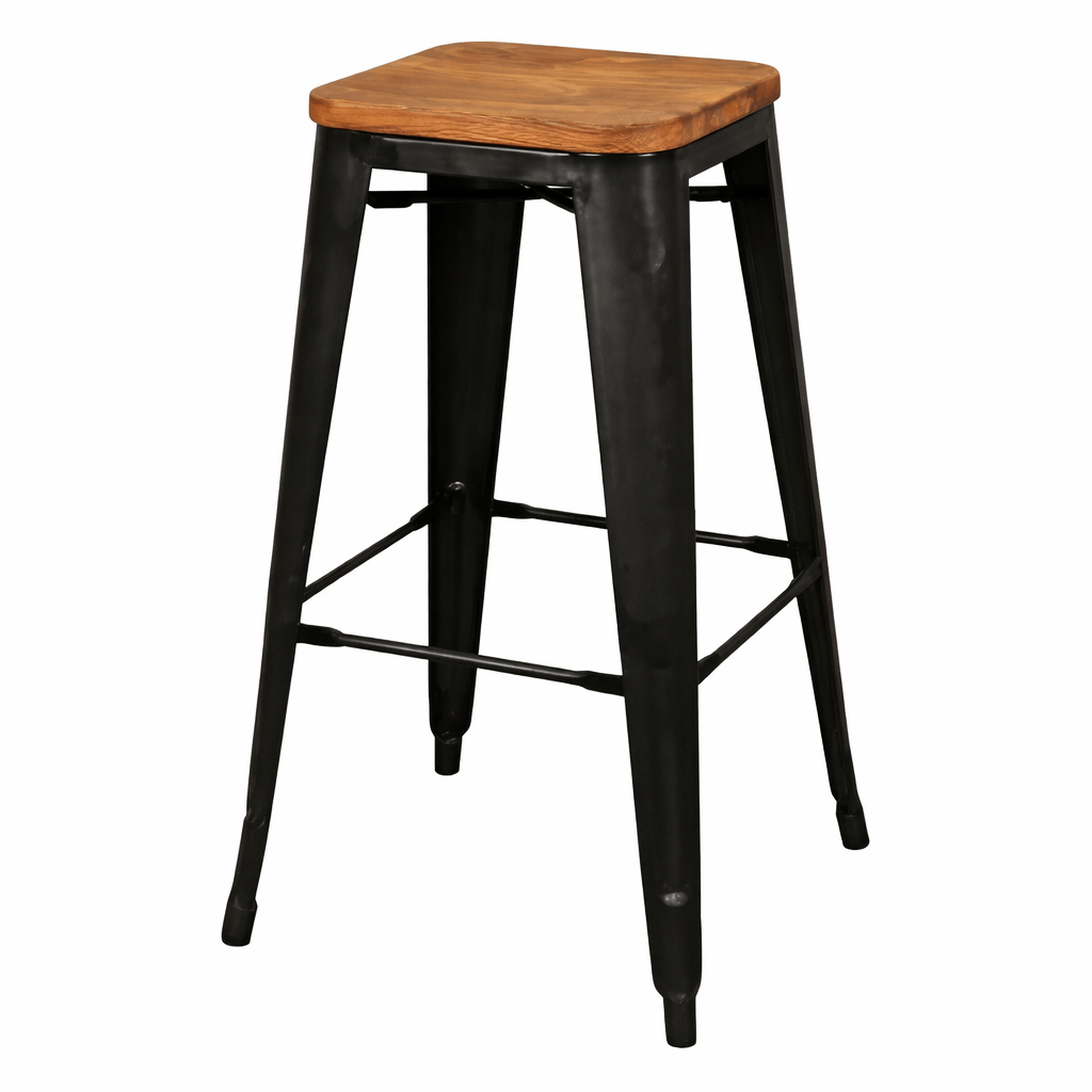Metropolis Backless Bar Stool with Wood Top – A modern loft apartment would be the perfect place for this offbeat Metropolis stool, but it lends a retro flair to any dining area. Complete with a solid pine seat, you can pair this 30” high stool with our Metropolis Bar Table and recreate the feeling of a downtown brew-pub or favorite hang-out. Fully assembled and stackable. 16.5" x 16.5" x 30"