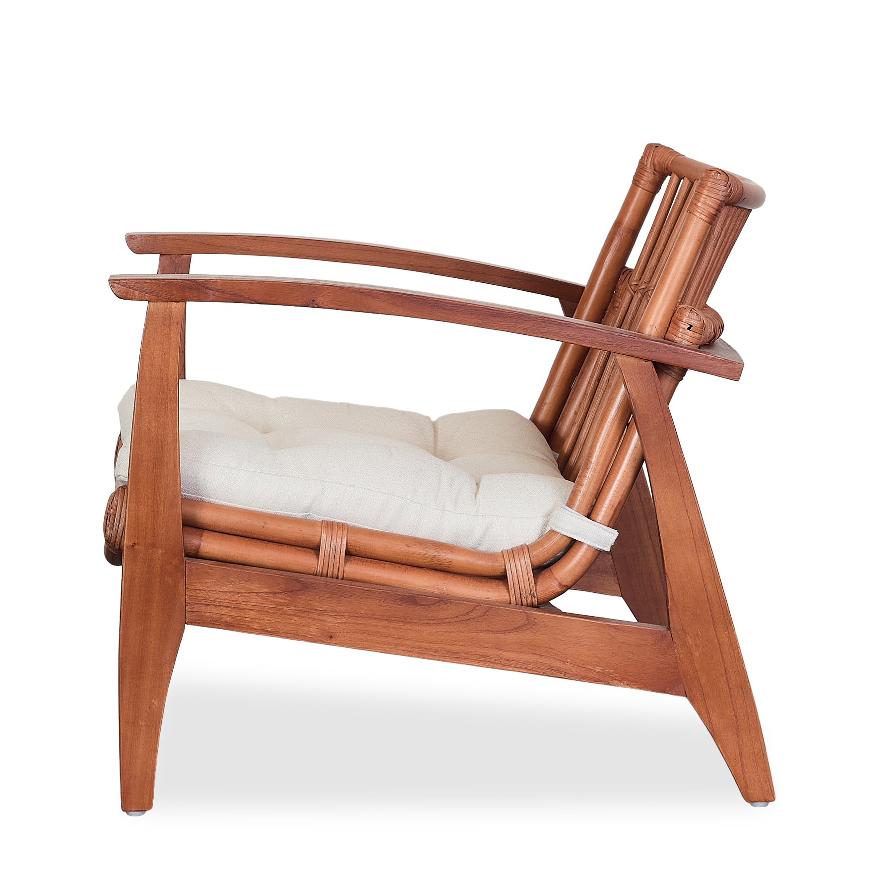 Paloma Rattan Lounge Chair blends mid-century elegance with natural craftsmanship, offering a light, airy aesthetic perfect for relaxed modern living. Featuring a sculpted teak wood frame, handwoven rattan seat and backrest, and plush off-white cushioning, this piece is ideal for living rooms, sunrooms, or reading corners seeking warmth, texture, and timeless style. Whether you’re looking for a statement accent or a comfortable retreat, this lounge chair is a beautifully crafted and enduring choice. Lifestyle images may be AI-generated. Please refer to the standalone images or request additional angles for accuracy.