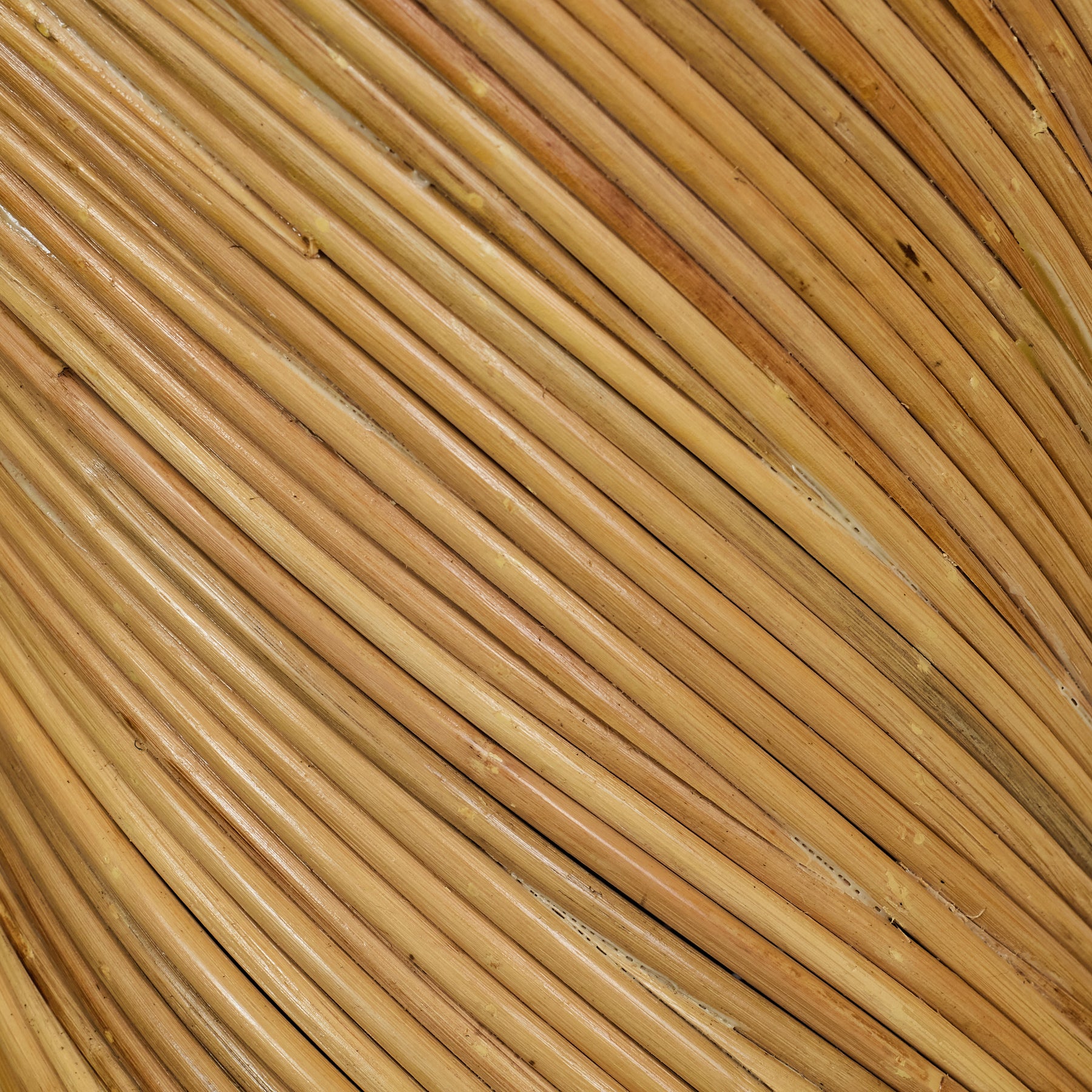 Palma Rattan Side Table blends organic mid-century style with handwoven rattan, offering a sculptural hourglass silhouette that radiates natural charm. Featuring tightly wrapped cane detailing and a round glass top, this piece is perfect for living rooms, sunrooms, or relaxed coastal-inspired interiors. Whether used as a statement accent or a functional surface, this side table is a timeless and airy choice. Lifestyle images may be AI-generated. Please refer to the standalone images or request additional angles for accuracy.