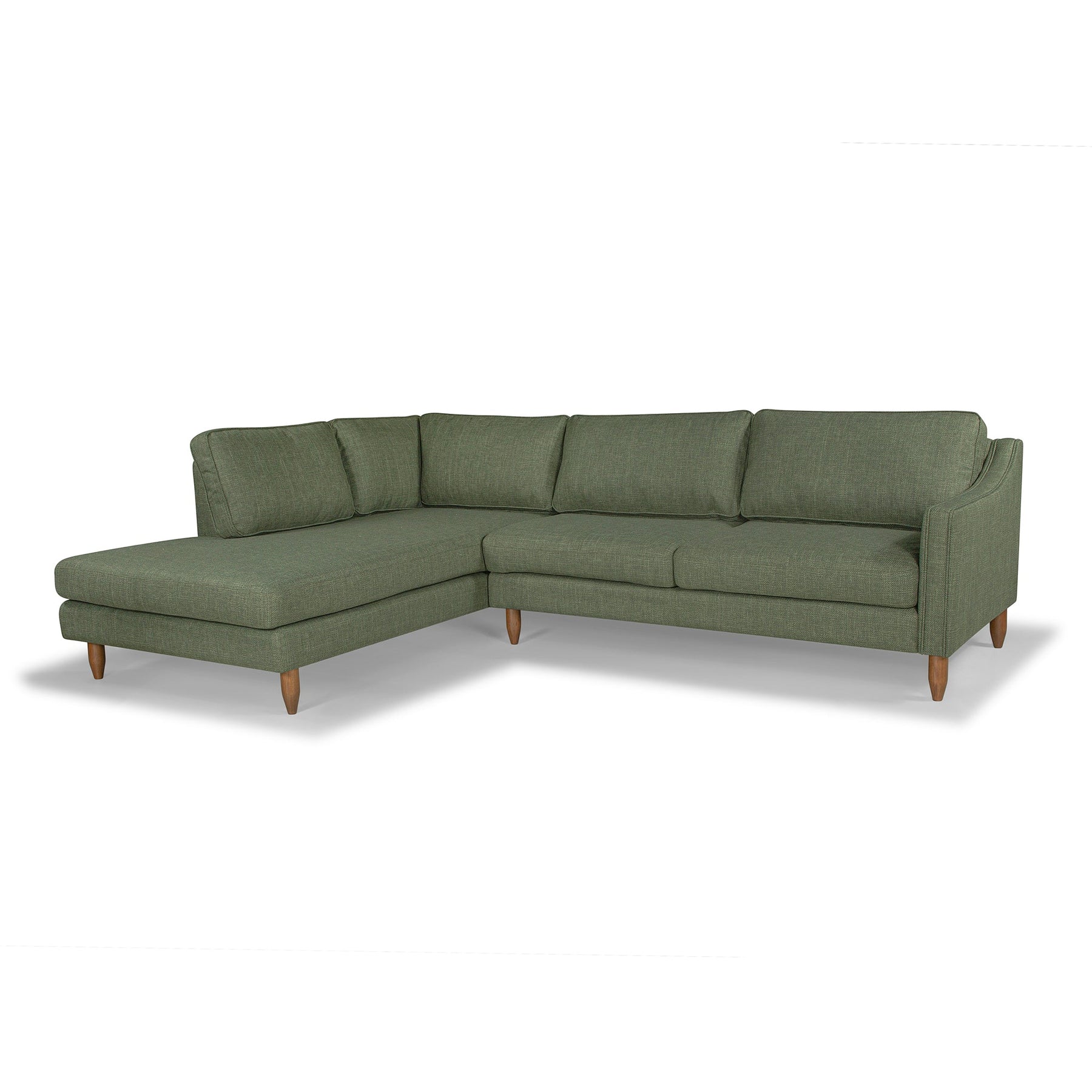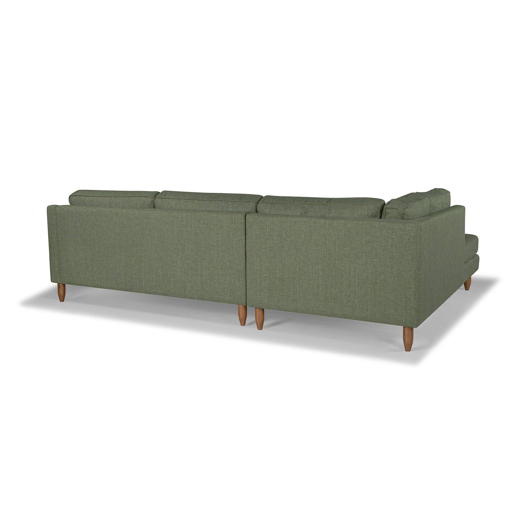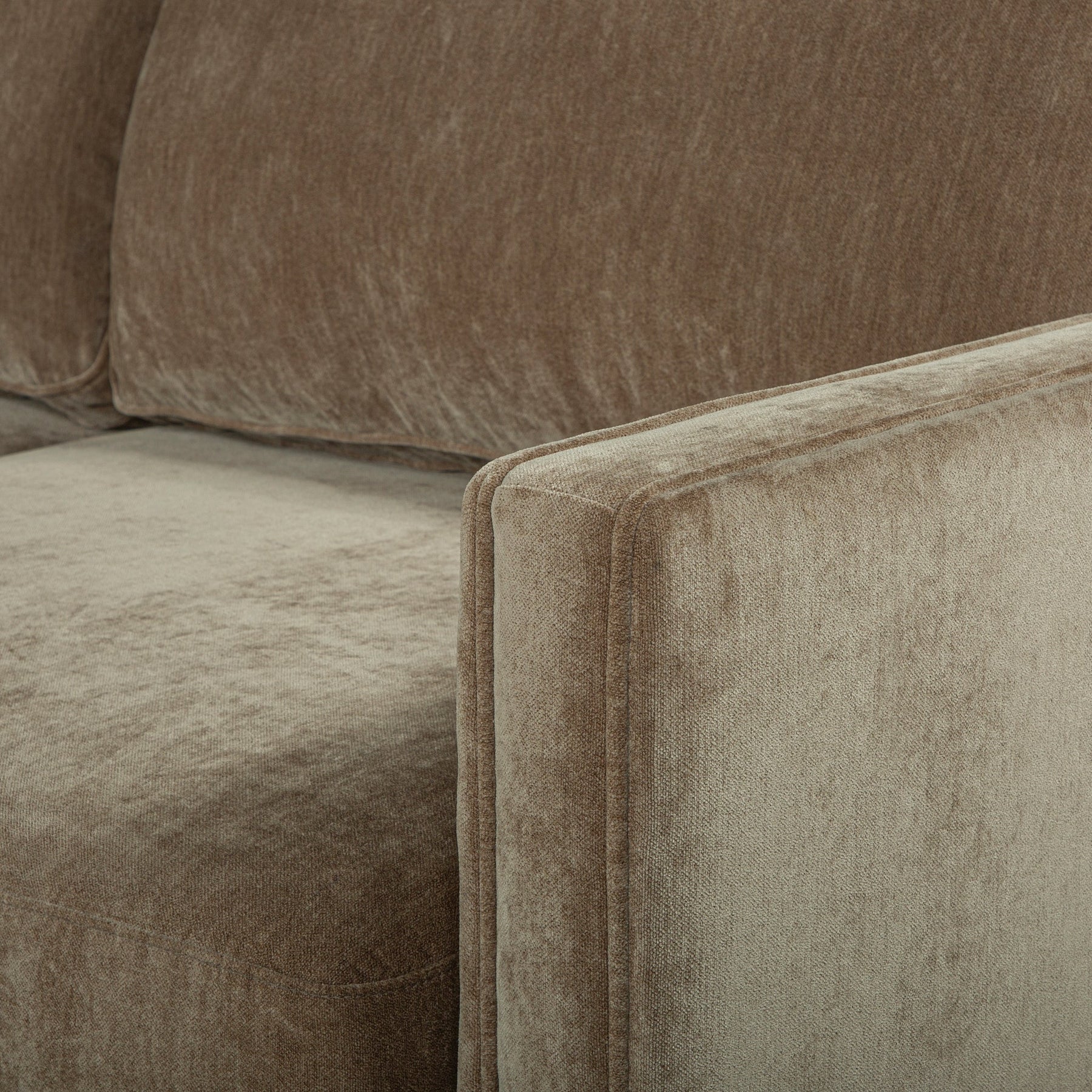 The Edgewater Sectional brings mid-century minimalism and plush velvet upholstery to large living rooms and open-concept lounges. A low-profile silhouette, subtly tapered solid wood legs, and generously cushioned seating turn it into a cozy daybed for slow afternoons.