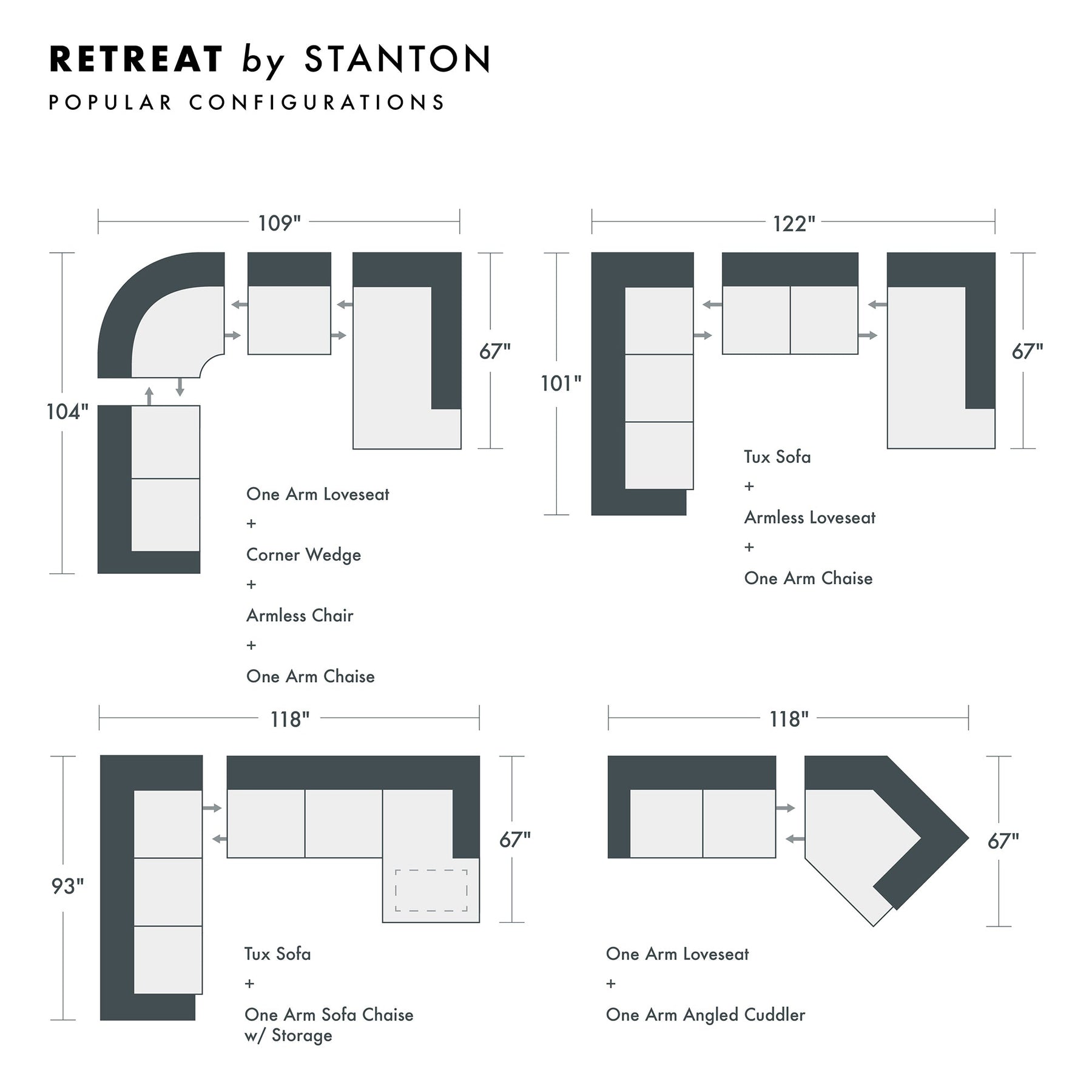 Discover the Retreat by Stanton at What's New Furniture. This made-to-order piece is fully customizable with various configurations, fabrics, seat firmness, and leg styles. Crafted in the Pacific Northwest, it’s built for durability, comfort, and timeless style.