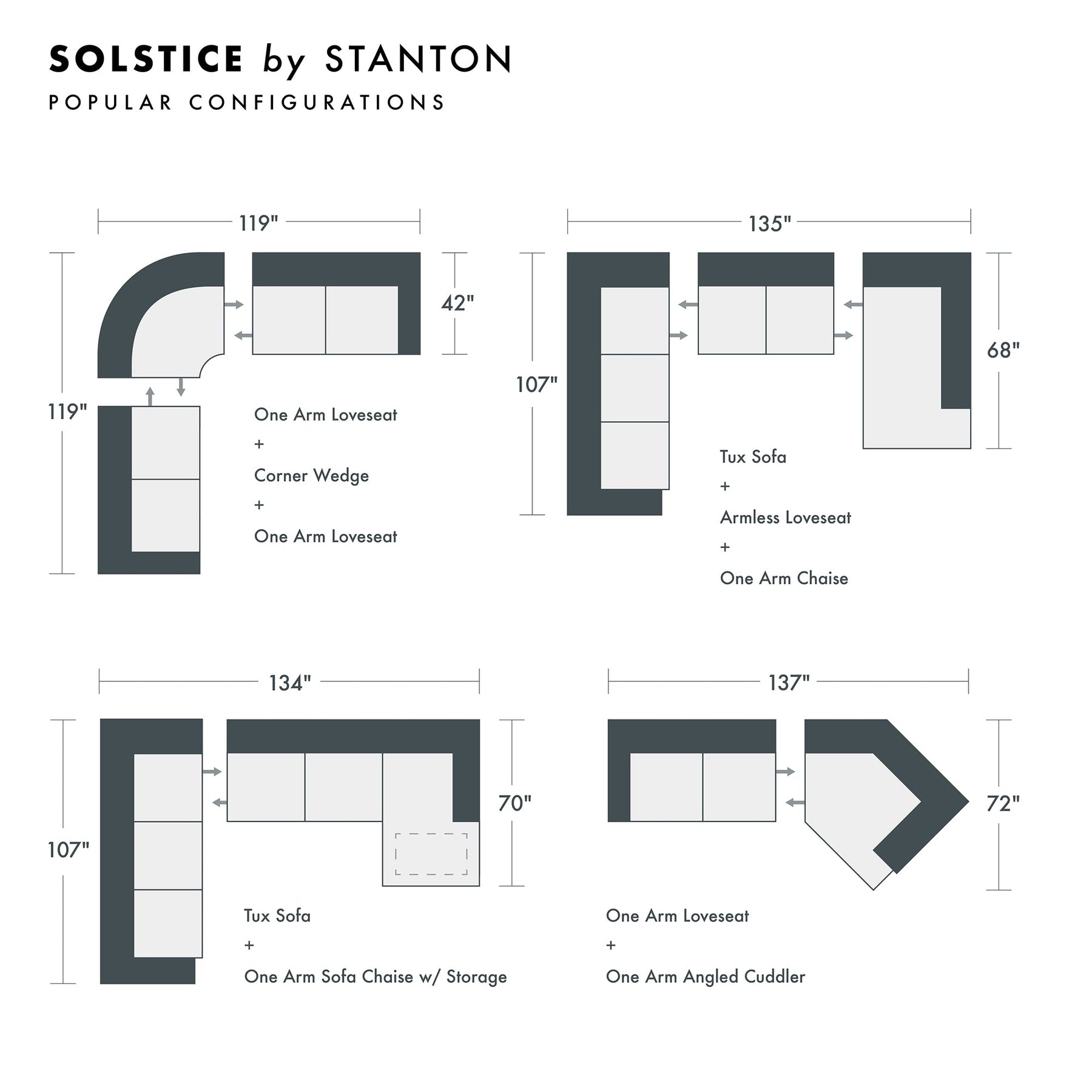 Discover the Solstice by Stanton at What's New Furniture. This made-to-order piece is fully customizable with various configurations, fabrics, seat firmness, and leg styles. Crafted in the Pacific Northwest, it’s built for durability, comfort, and timeless style.