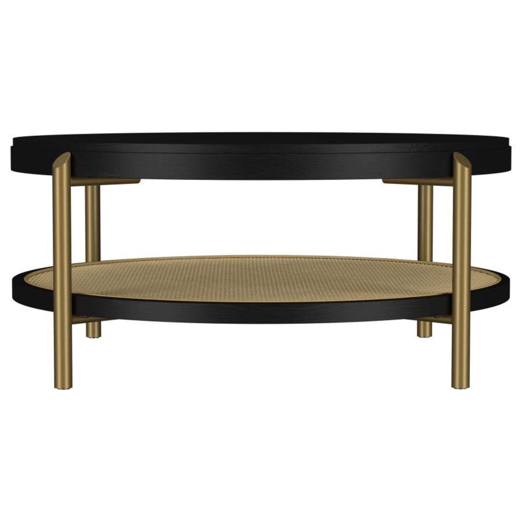 The Arini Round Coffee Table blends modern design with rustic charm, making it an ideal centerpiece for today’s living spaces. Crafted from rubberwood, engineered wood, and white ash veneer, its smooth surface showcases natural wood grain for an inviting, organic look. A woven rattan lower shelf adds both texture and practical storage, while aged brass-finished metal legs provide strength and a touch of timeless style. The result is a versatile coffee table that combines durability with effortless sophistication.