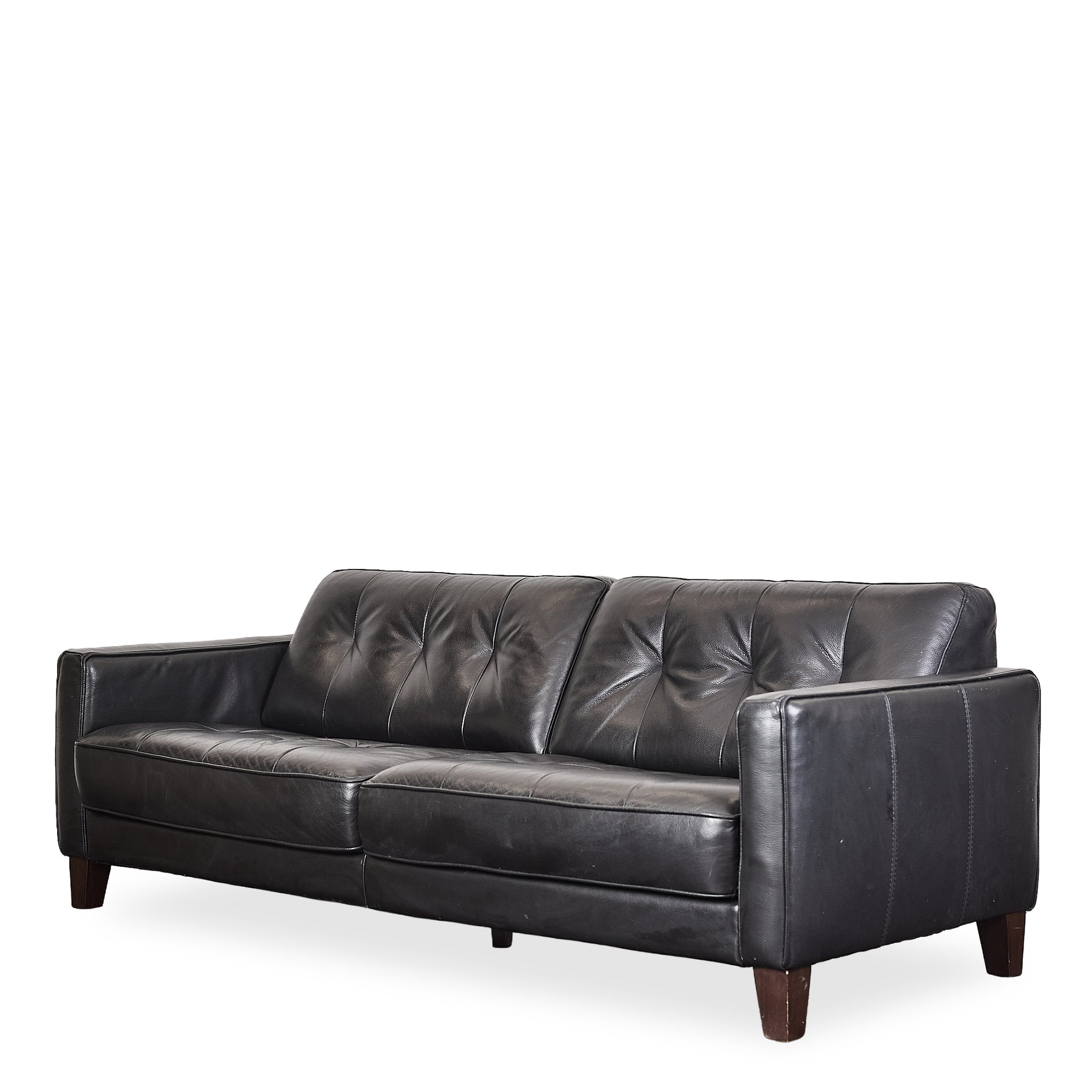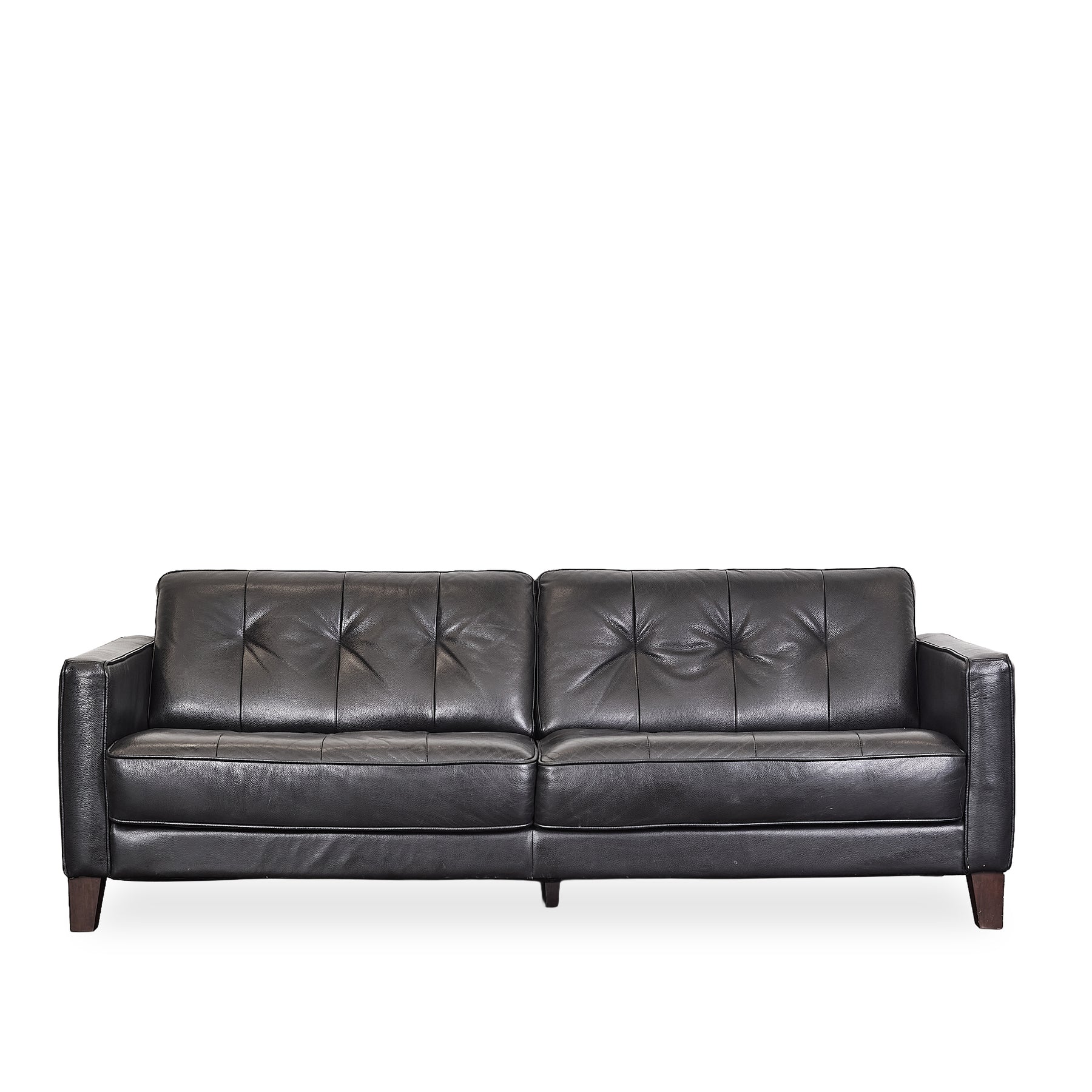Baxter Tufted Leather Mid-Century Sofa in Ebony blends classic sophistication with supple top-grain leather, offering a streamlined silhouette rooted in timeless mid-century design. Featuring tufted back cushions, squared arms, and tapered solid wood legs, this piece is perfect for living rooms, offices, or refined lounge spaces. Whether you’re seeking a statement centerpiece or luxurious everyday comfort, this leather sofa is a stylish and enduring choice. Lifestyle images may be AI-generated. Please refer to the standalone images or request additional angles for accuracy.