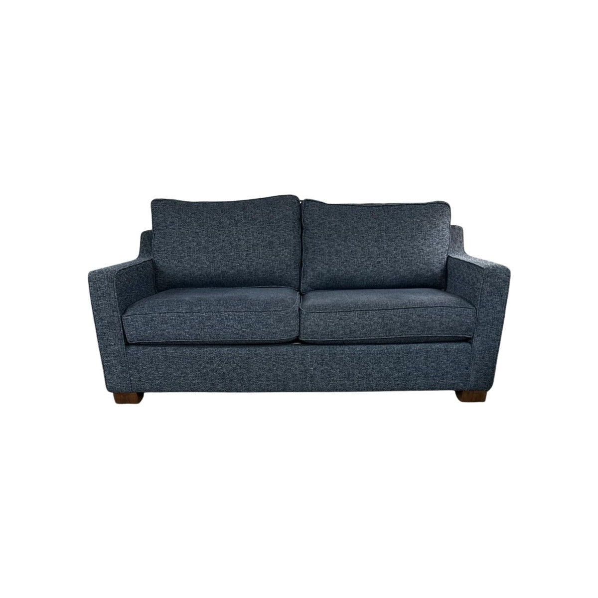 This stunning blue sofa is a statement piece for any living room. With its sleek mid-century design lines and vibrant blue hue, it's a timeless addition to your curated space. Measuring 70.5 x 37 x 34, this excellent condition piece is the perfect find for those seeking unique, pre-owned furniture in Portland. It pairs beautifully with brass accents and natural textiles.