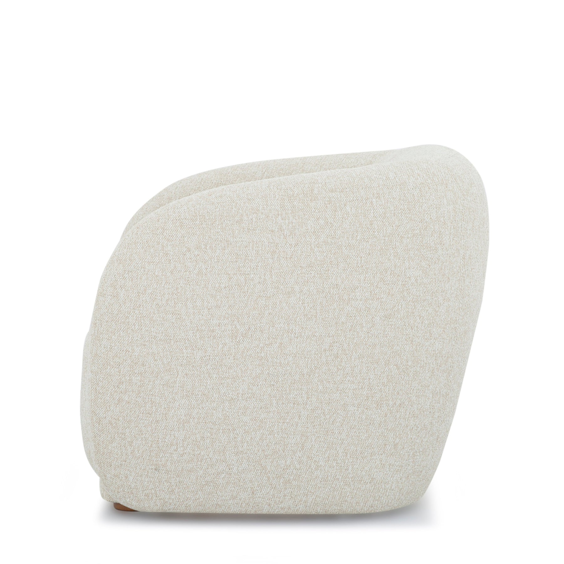 Finn Armchair in Fawn side view - sculptural barrel chair - Whats New Furniture Portland OR