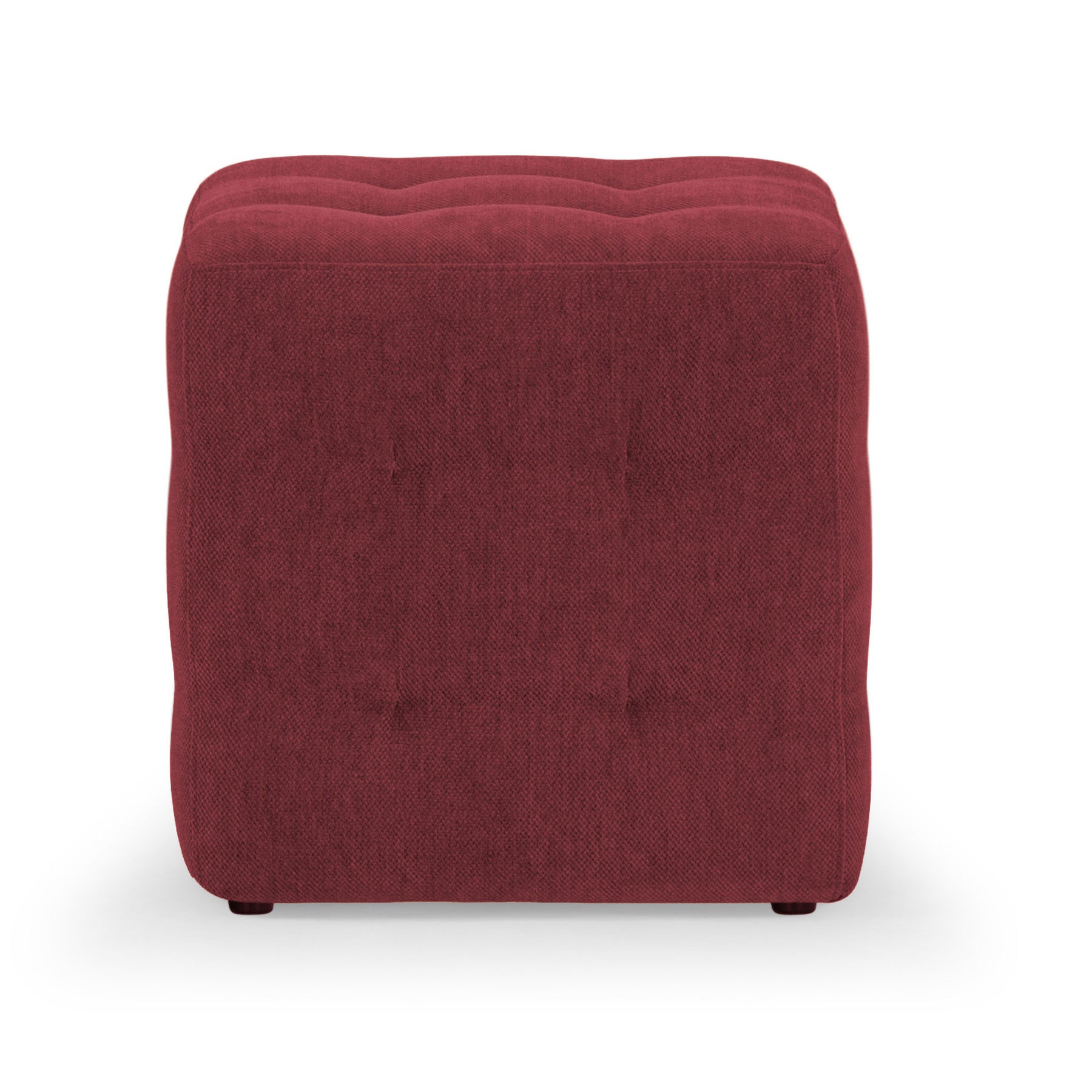The Kerby Tufted Ottoman blends playful form with rich garnet chenille, offering a luxe accent that doubles as casual seating or a plush footrest. Featuring subtle tufting, soft wave-like top stitching, and a fully upholstered silhouette, this piece is perfect for living rooms, bedrooms, or reading nooks. Whether you’re styling a layered lounge or need flexible extra seating, this ottoman is a bold yet versatile addition. Lifestyle images may be AI-generated. Please refer to the standalone images or request additional angles for accuracy.
