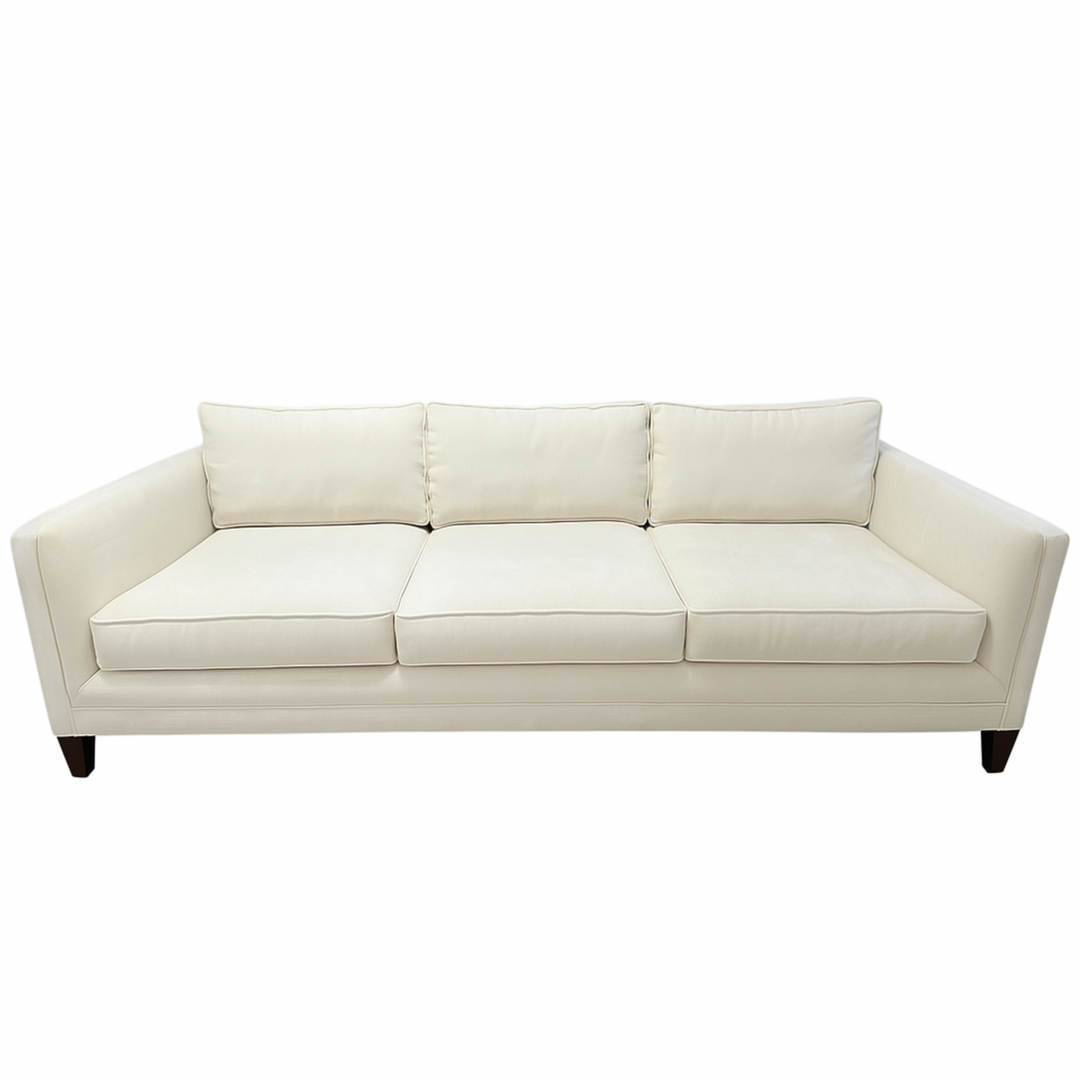 Understated elegance meets everyday comfort with this consigned Mitchell Gold + Bob Williams Reese Sofa, a beautifully tailored 3-seater with subtle mid-century inspiration. Designed with clean lines, plush cushions, and tapered wood feet, this sofa offers a timeless silhouette that blends effortlessly into both modern and classic spaces.