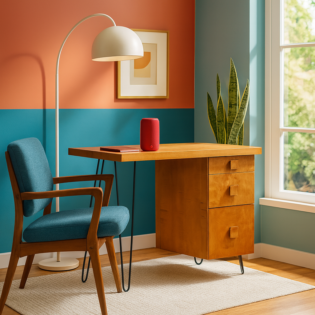 The Teak & Steel Hairpin Leg Desk blends minimalist mid-century style with warm birch wood, offering a sleek and functional workspace. Featuring solid wood construction, sculpted drawer pulls, and iconic black steel hairpin legs, this piece is perfect for home offices, studios, or creative corners. Whether you’re looking for a compact workstation or a vintage-inspired writing desk, this desk is a timeless, space-savvy choice. Lifestyle images may be AI-generated. Please refer to the standalone images or request additional angles for accuracy.