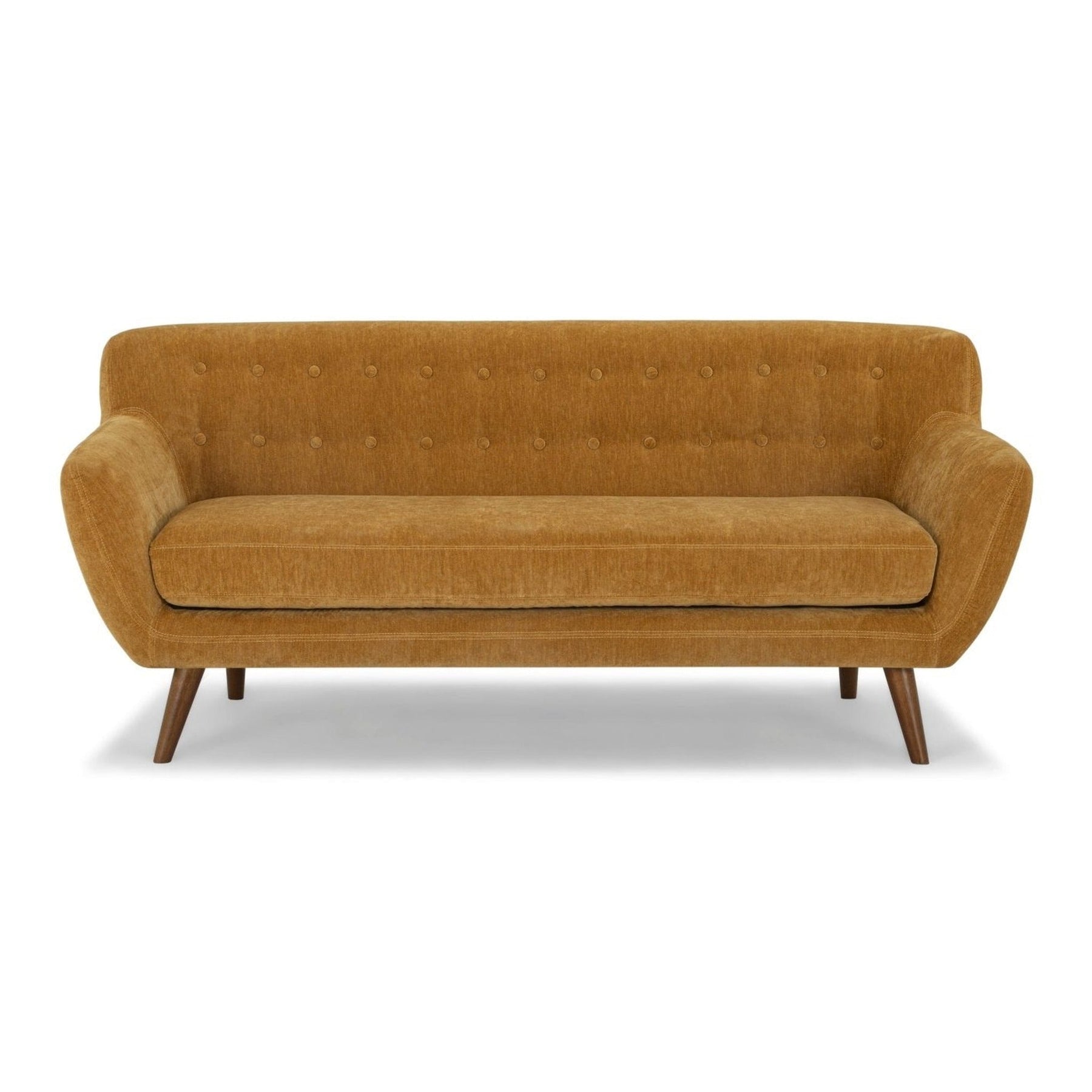 Perfect for mid-century homes and small spaces, this loft sofa maximizes seating space with a tight back and curved underside. A button upholstered back and angled tapered legs give a sharp vintage look that will go with all of your living room's vintage finds.