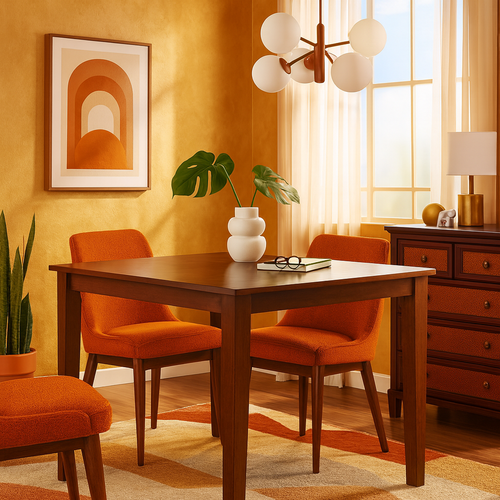 Ridgewood Mid-Century Dining Table blends streamlined design with a rich walnut wood finish, offering a versatile centerpiece for modern dining spaces. Featuring tapered legs, a smooth rectangular top, and solid wood construction, this piece is perfect for dining rooms, breakfast nooks, or open-concept living areas. Whether you’re hosting intimate dinners or casual gatherings, this mid-century dining table is a timeless and durable choice. Lifestyle images may be AI-generated. Please refer to the standalone images or request additional angles for accuracy.