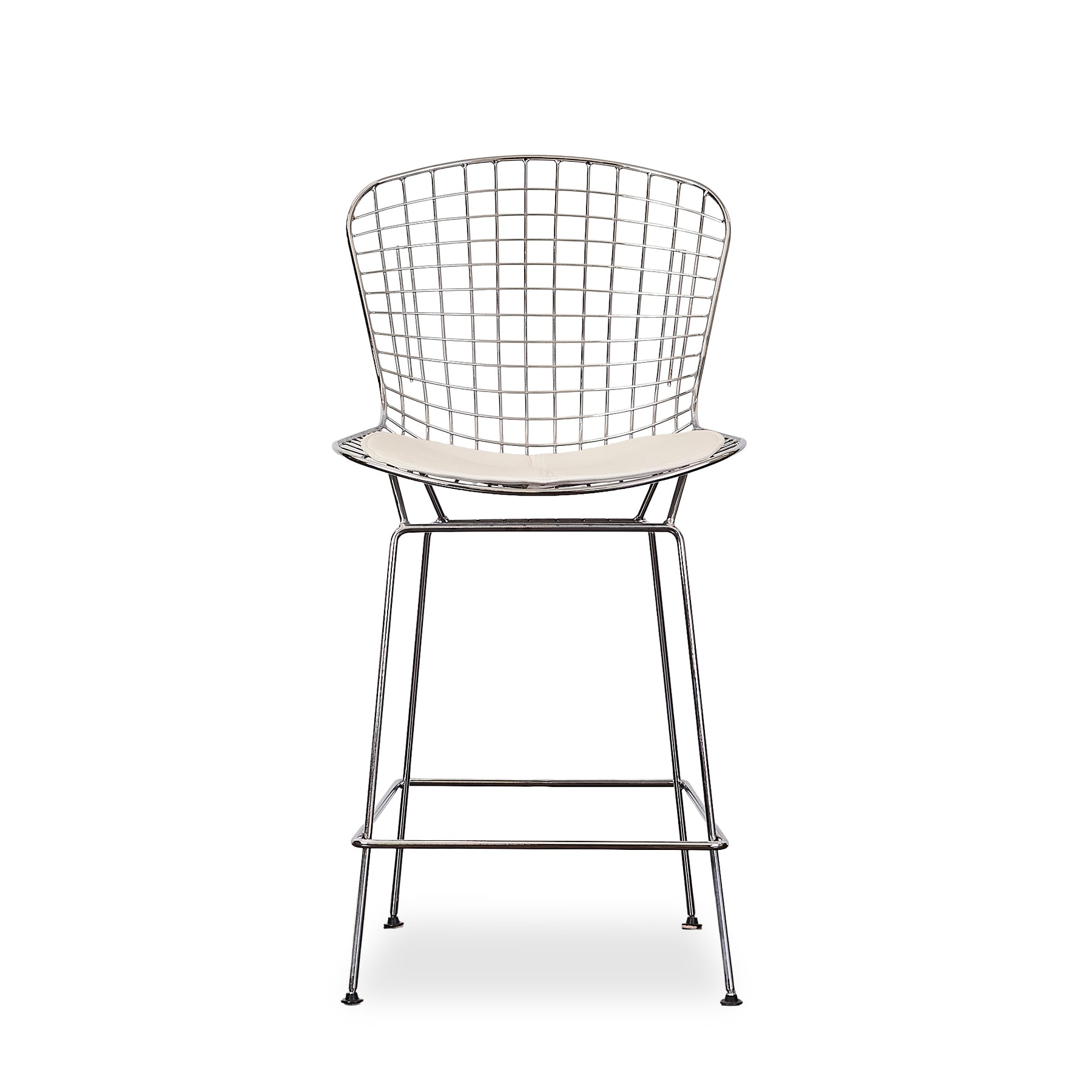 The Warren Wire Bar Stool blends iconic mid-century form with polished chrome, offering a sculptural yet airy presence for elevated seating. Featuring a grid-style steel frame, ergonomic curved back, and a slim padded seat in neutral upholstery, this piece is perfect for kitchen islands, home bars, or modern loft spaces. Whether you’re looking for architectural flair or everyday comfort, this bar stool is a timeless and functional choice. Lifestyle images may be AI-generated. Please refer to the standalone images or request additional angles for accuracy.